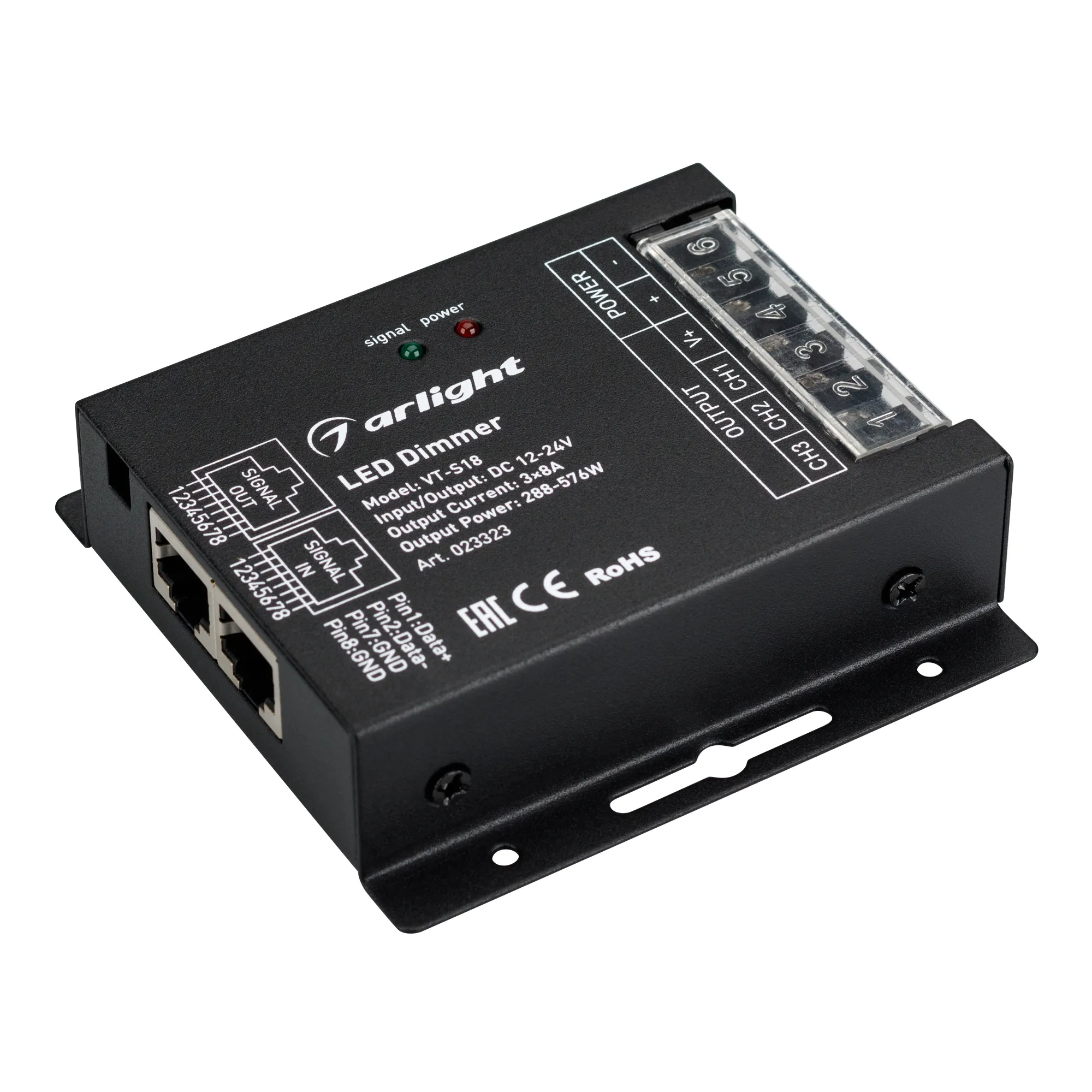 В магазине Мельковский Свет Вы можете купить "Диммер VT-S18-3x8A (12-24V, ПДУ Стик 12кн, RF) (Arlight, IP20 Металл, 3 года)"