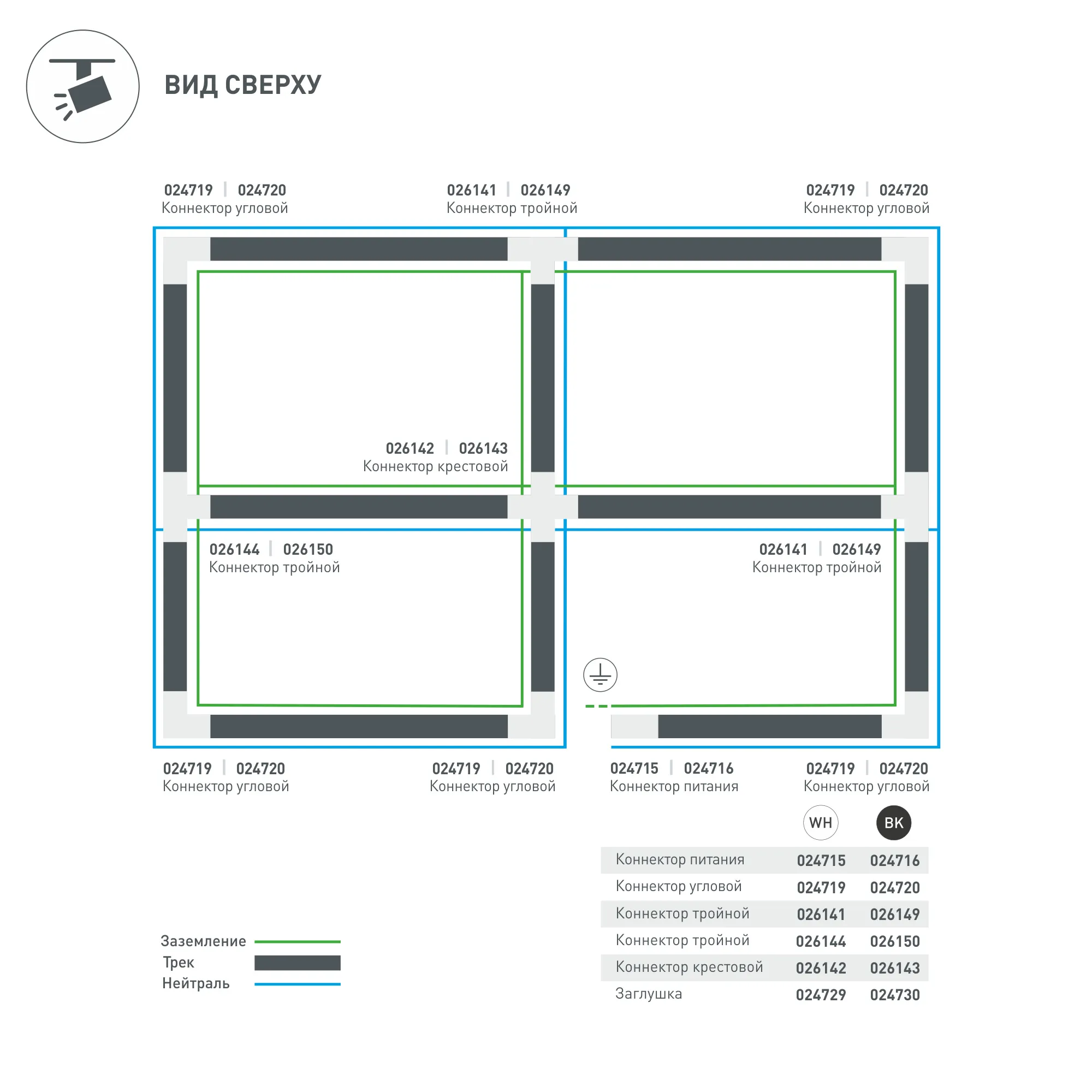 Направление соединений внутри/справа (определение необходимого коннектора происходит относительно контакта заземления системы). 166х99х33 мм с контактами, 99х66х33 мм без контактов. При использовании с треками и аксессуарами другой серии возможно отличие по цвету.