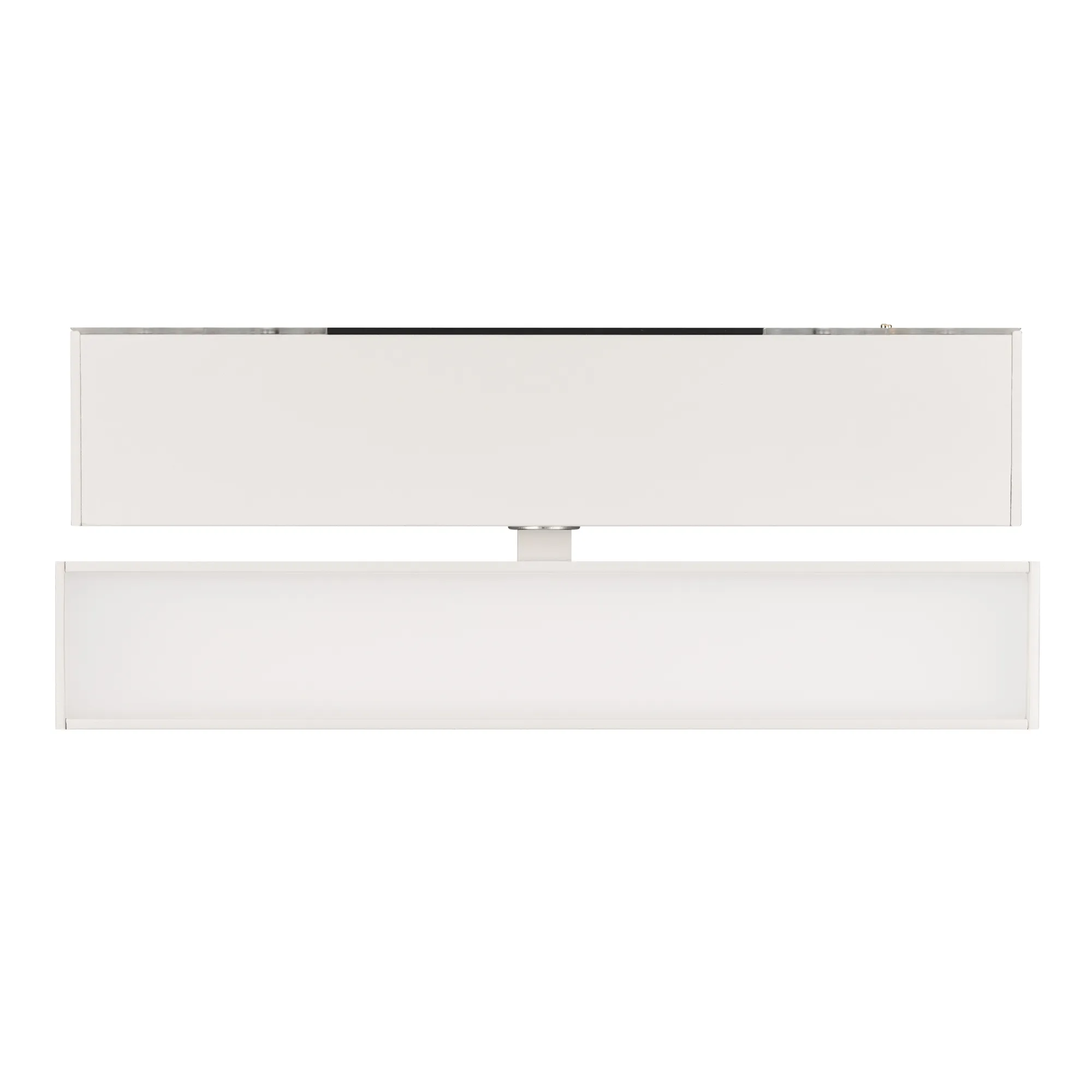 Светильник поворотный для магнитных треков шириной 45мм, 6Вт. Цвет свечения ДНЕВНОЙ 4000K, световой поток 650лм, угол 100°, CRI>90. Корпус прямоугольный, металл, цвет белый, IP20. Размеры LxWxH 204x35x92.5мм. Входное напряжение DC24V, мощность 6Вт. Драйвер DС24V/AC230V поставляется отдельно. Диммируется только с 026407(1), 027633.