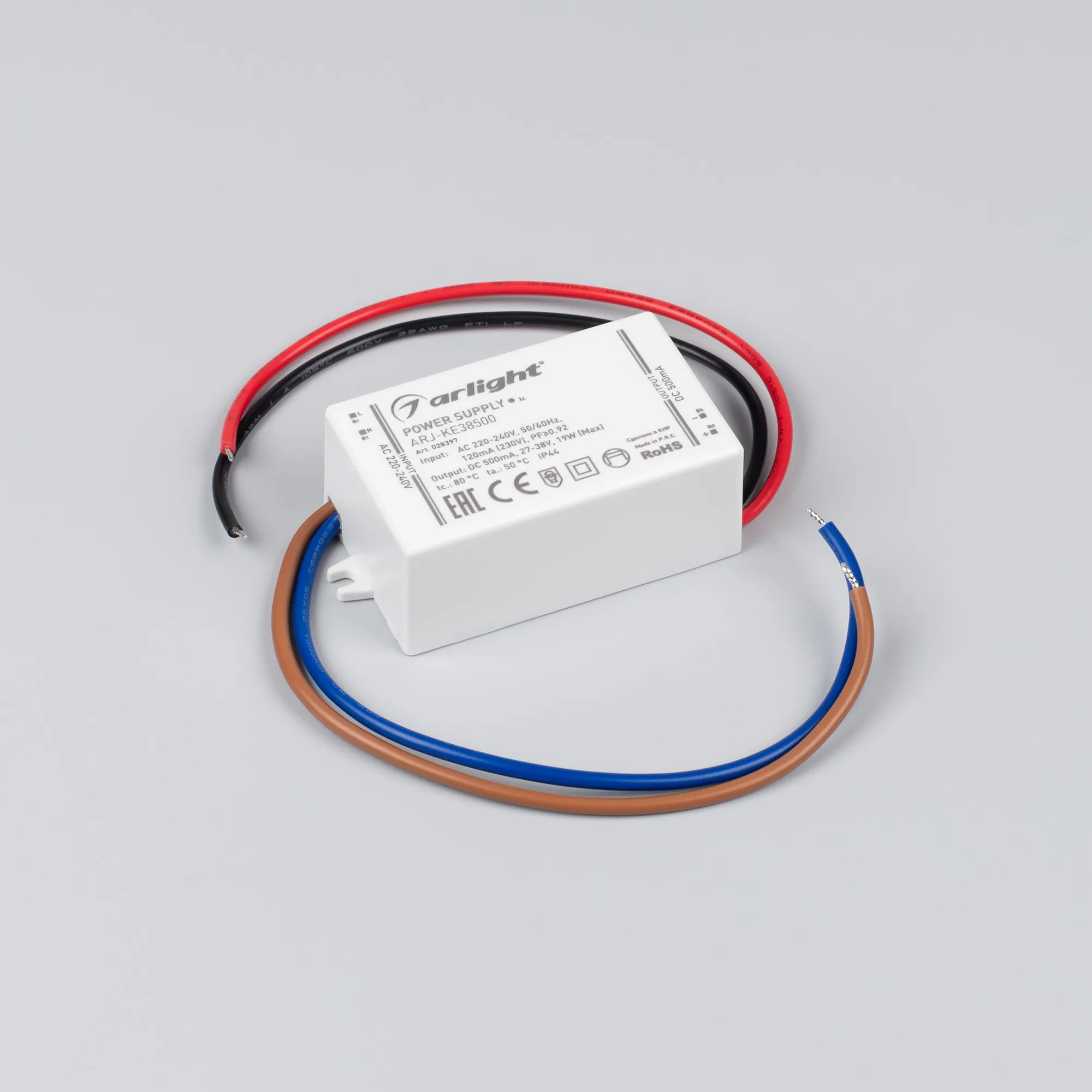Блок питания ARJ-KE38500 (19W, 500mA, PFC) (Arlight, IP44 Пластик, 5 лет)