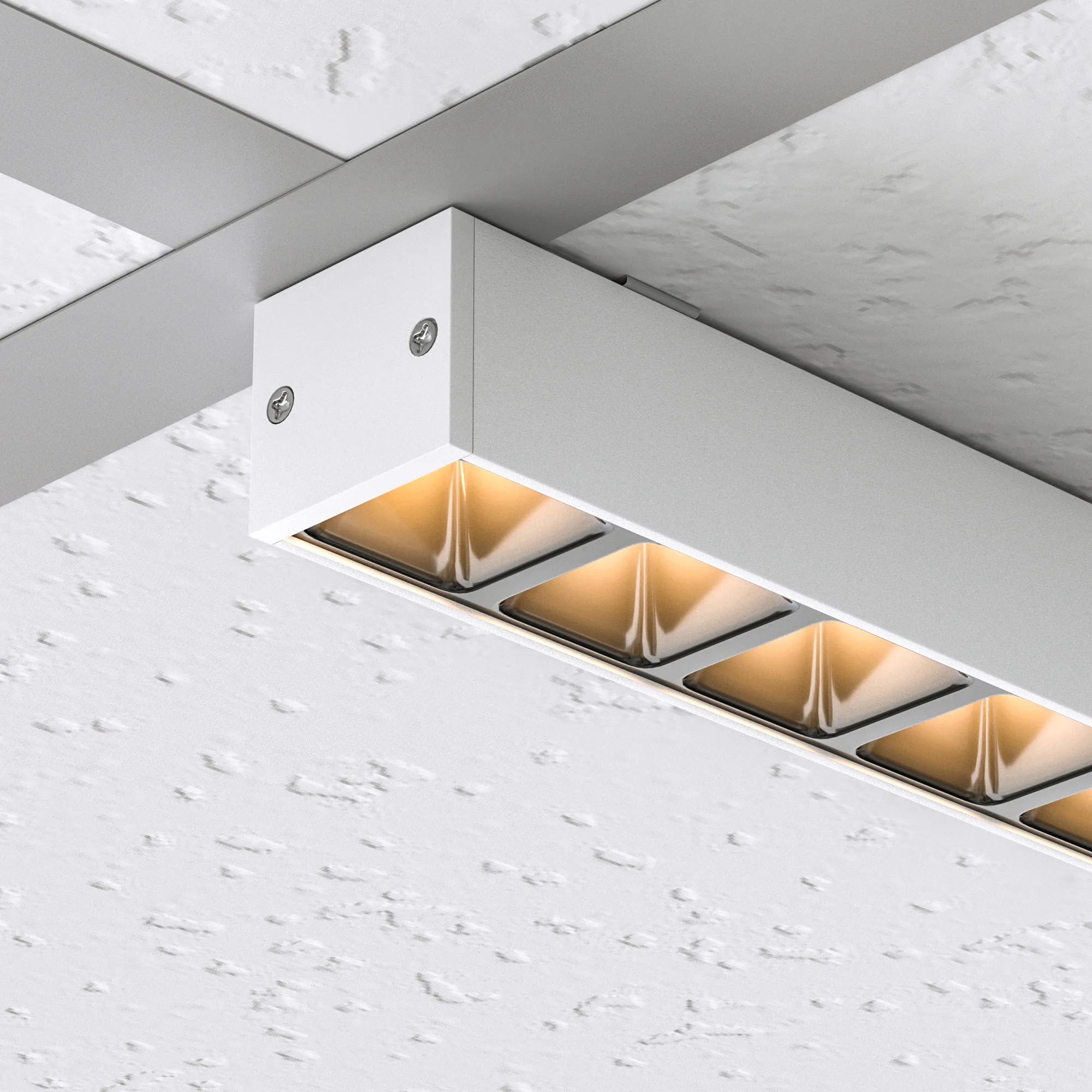 Светодиодный светильник для направляющих потолка Армстронг шириной 15 и 24 мм. Мощность 14 Вт, св. поток 1190 лм, 76 лм/Вт, теплый 3000K, CRI>80, угол 80°, напряжение питания 48 В. Белый квадратный корпус из алюминия, экран PC, степень защиты IP40. Размер: длина 600 мм, ширина 25 мм, высота 28 мм. Монтаж накладной. Драйвер поставляется отдельно.