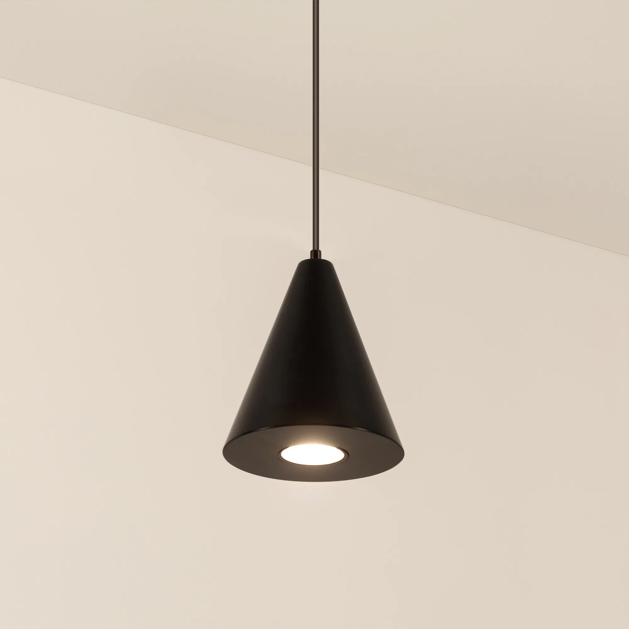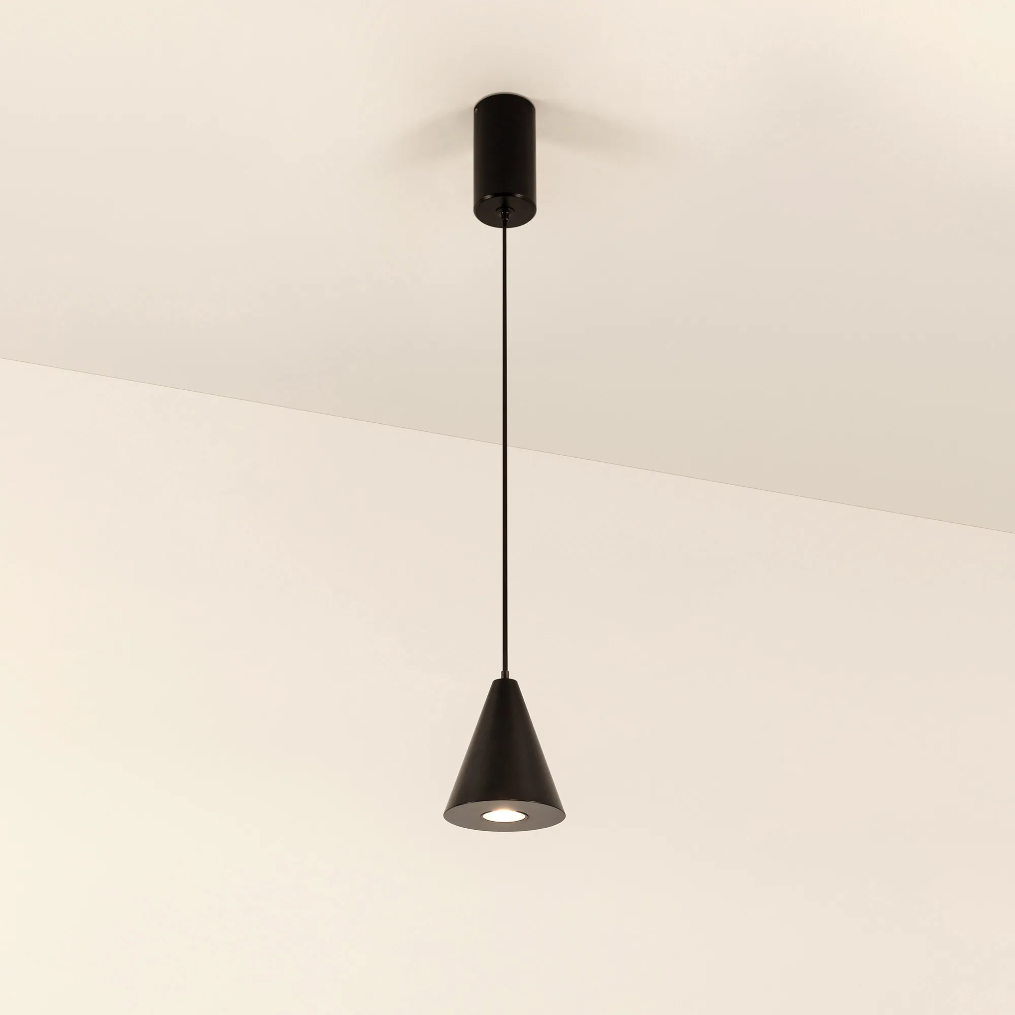 Подвесной светильник. Мощность 9 Вт, св. поток 650 лм, 73 лм/Вт, теплый 3000 K, CRI>80, угол 39°, напряжение питания 230 В. Черный корпус из алюминия, экран , степень защиты IP40. Размер: диаметр 83 мм, высота 97 мм. Монтаж подвесной, длина подвеса 1500мм, регулируемая. Габариты чаши Ø50x95 мм. Драйвер 28-42 В, 250 мА, пульсация <5%.