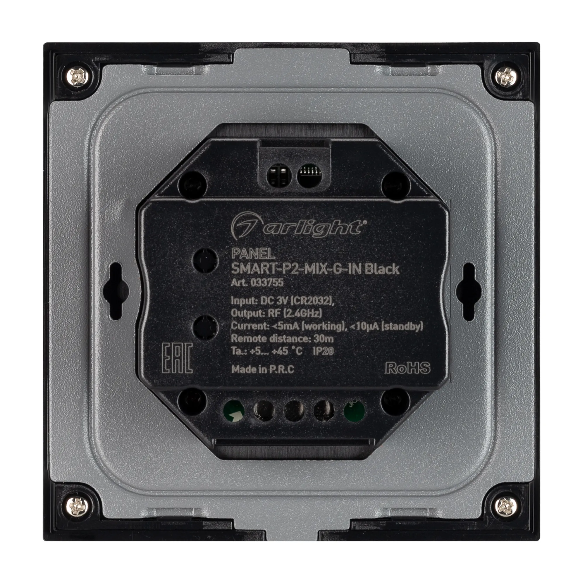 Панель SMART-P2-MIX-G-IN Black (3V, Rotary, 2.4G) (Arlight, IP20 Пластик, 5 лет)