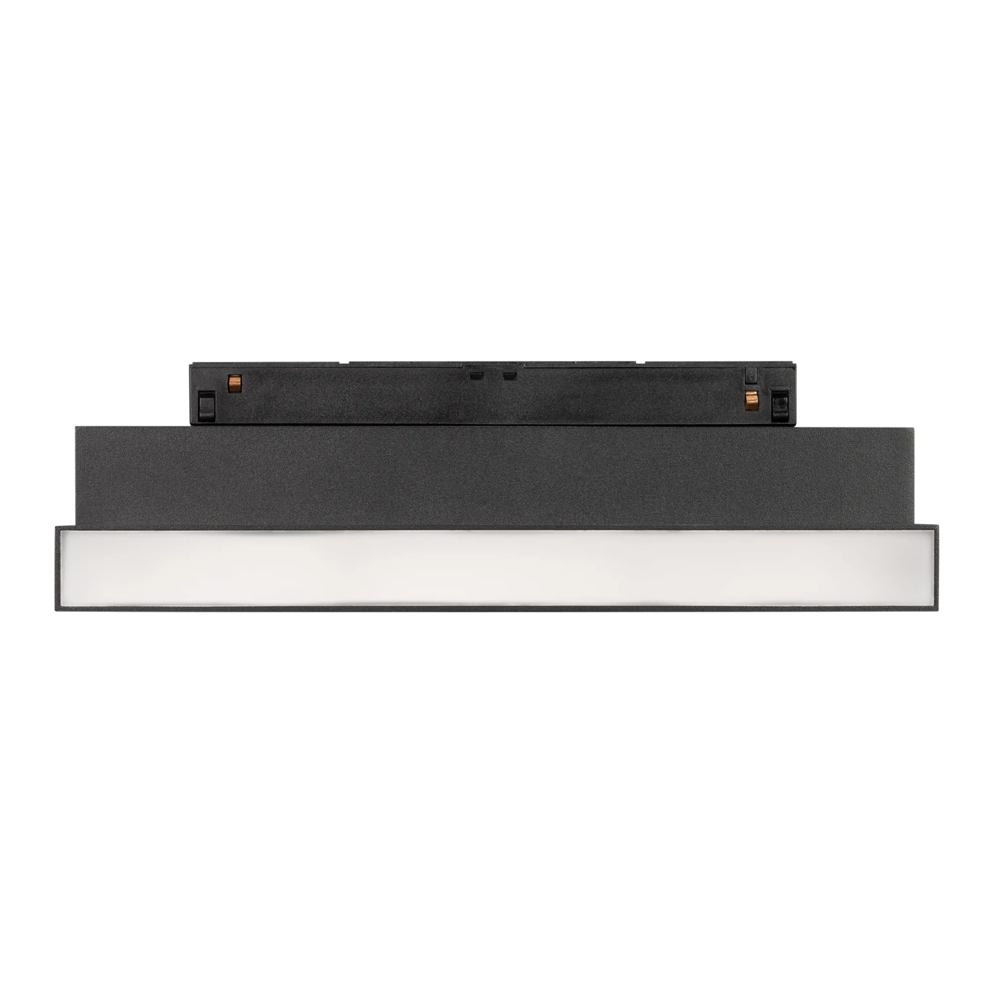 Светильник для магнитных треков MAG-ORIENT шириной 26 мм. Мощность 12 Вт, св. поток 750 лм, 60 лм/Вт, теплый 3000 K, CRI>90, угол 80°, напряжение питания 48 В. Черный прямоугольный корпус из металл, экран поликарбонат, степень защиты IP20. Размер: длина 231 мм, ширина 23 мм, высота 107 мм. Монтаж на трек MAG-ORIENT. Пульсация <1%.