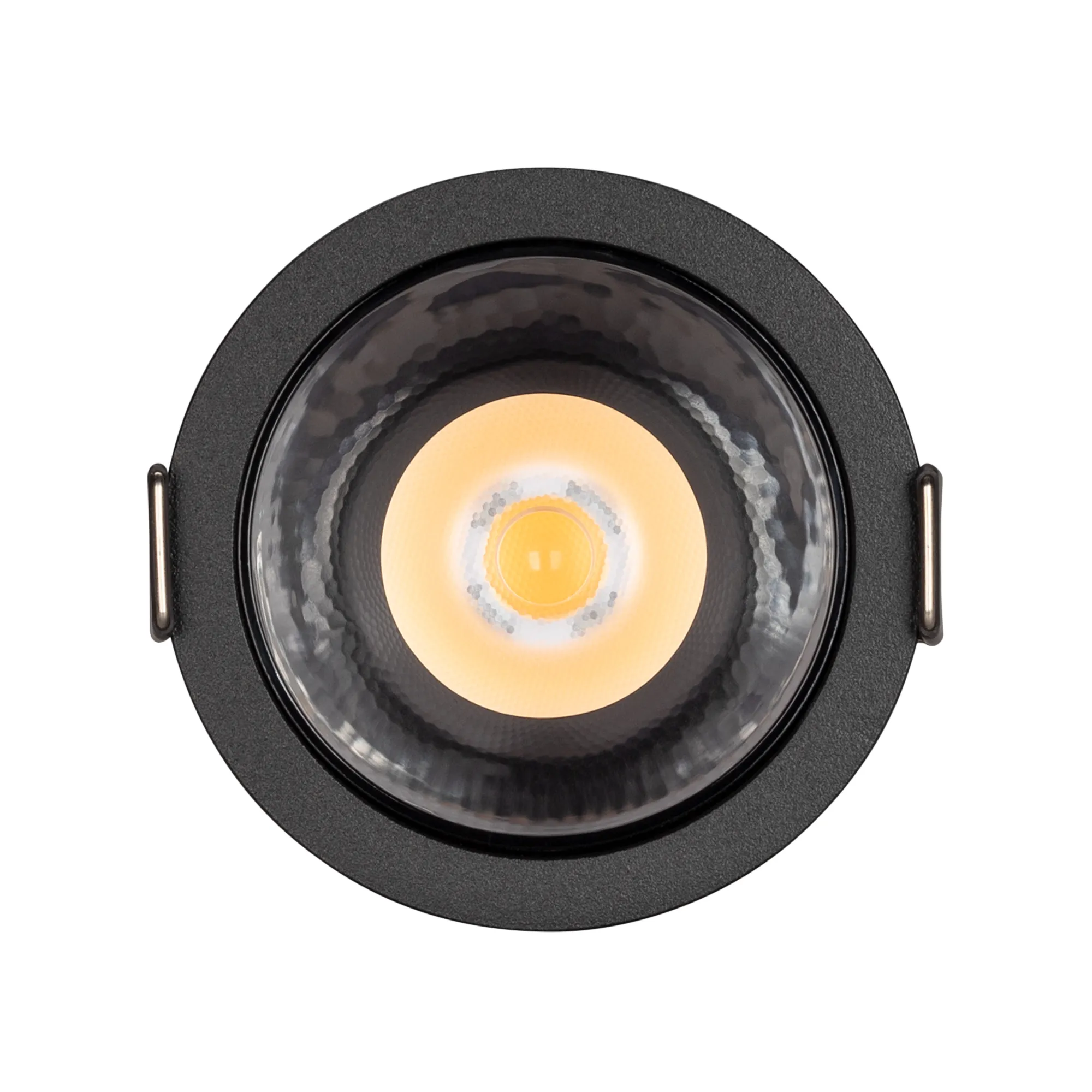 Встраиваемый светильник даунлайт. Мощность 20 Вт, св. поток 1640 лм, 82 лм/Вт, теплый 3000 K, CRI>90, UGR<16, угол 30°, напряжение питания 230 В. Черный круглый корпус из алюминия, черный ГЛЯНЦЕВЫЙ отражатель из PMMA, степень защиты IP20. Размер: диаметр 72 мм, высота 79 мм. Монтаж встраиваемый, установочное отверстие: диаметр 66 мм. Драйвер 24-40 В, 500 мА, пульсация <2%.