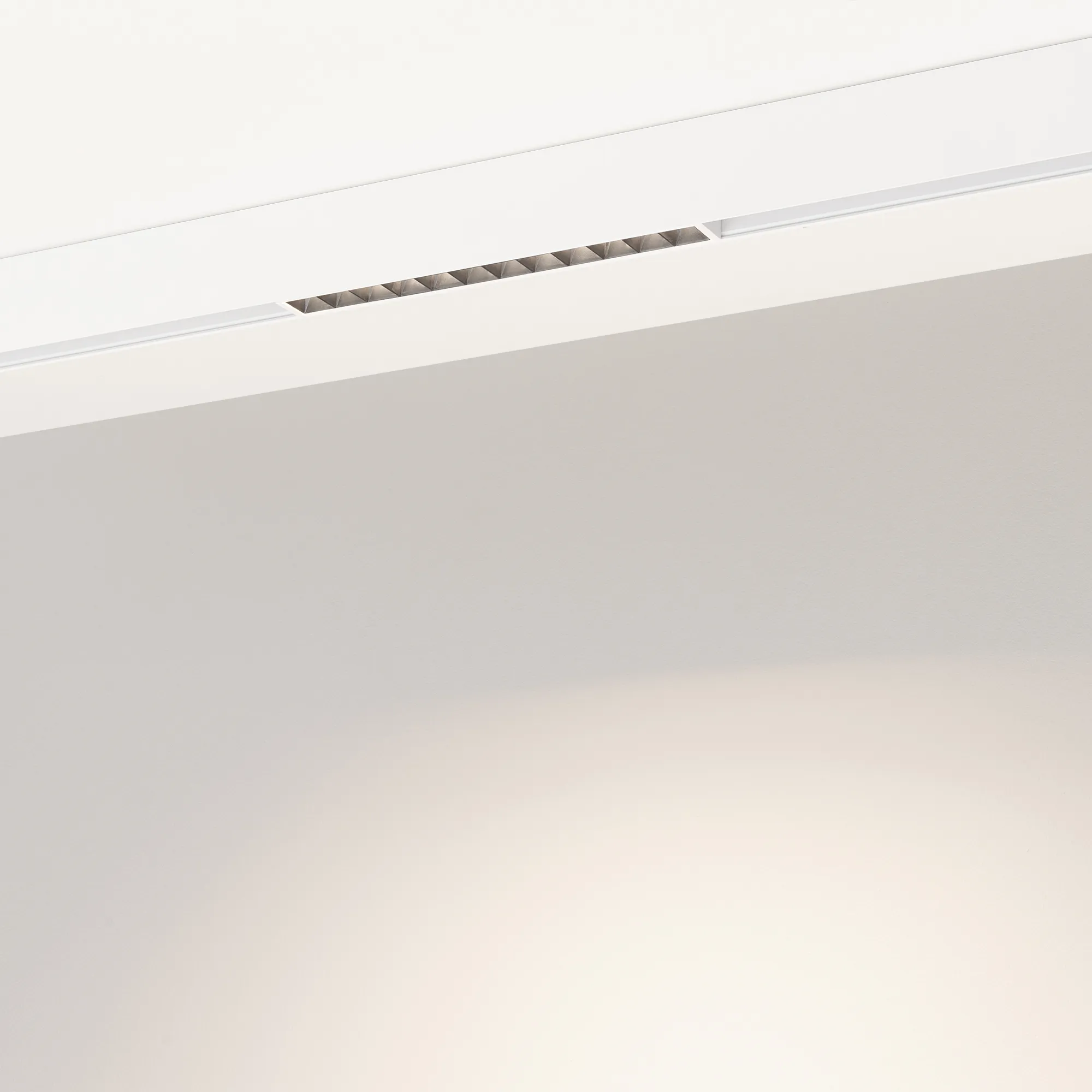 Светильник для магнитных треков MAG-ORIENT шириной 26 мм. Мощность 8 Вт, св. поток 460 лм, 58 лм/Вт, дневной 4000 K, CRI>90, угол 24°, напряжение питания 48 В. Белый прямоугольный корпус из металл, экран поликарбонат, степень защиты IP20. Размер: длина 235 мм, ширина 22 мм, высота 42 мм. Монтаж на трек MAG-ORIENT. Пульсация <1%.