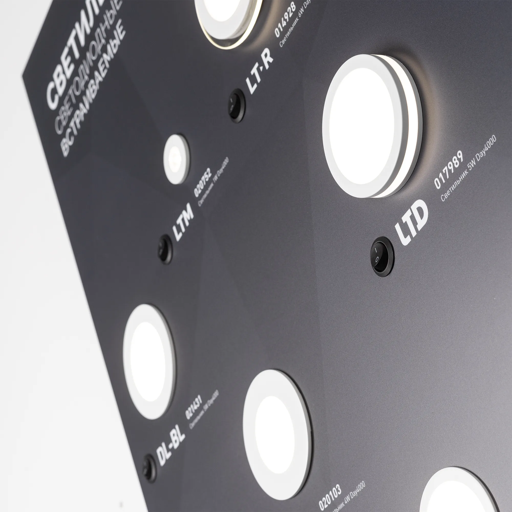 Стенд Светильники встраиваемые Интерьерные ARLIGHT-1100x600mm (DB 3мм, пленка, подсветка) (Arlight, Пластик)