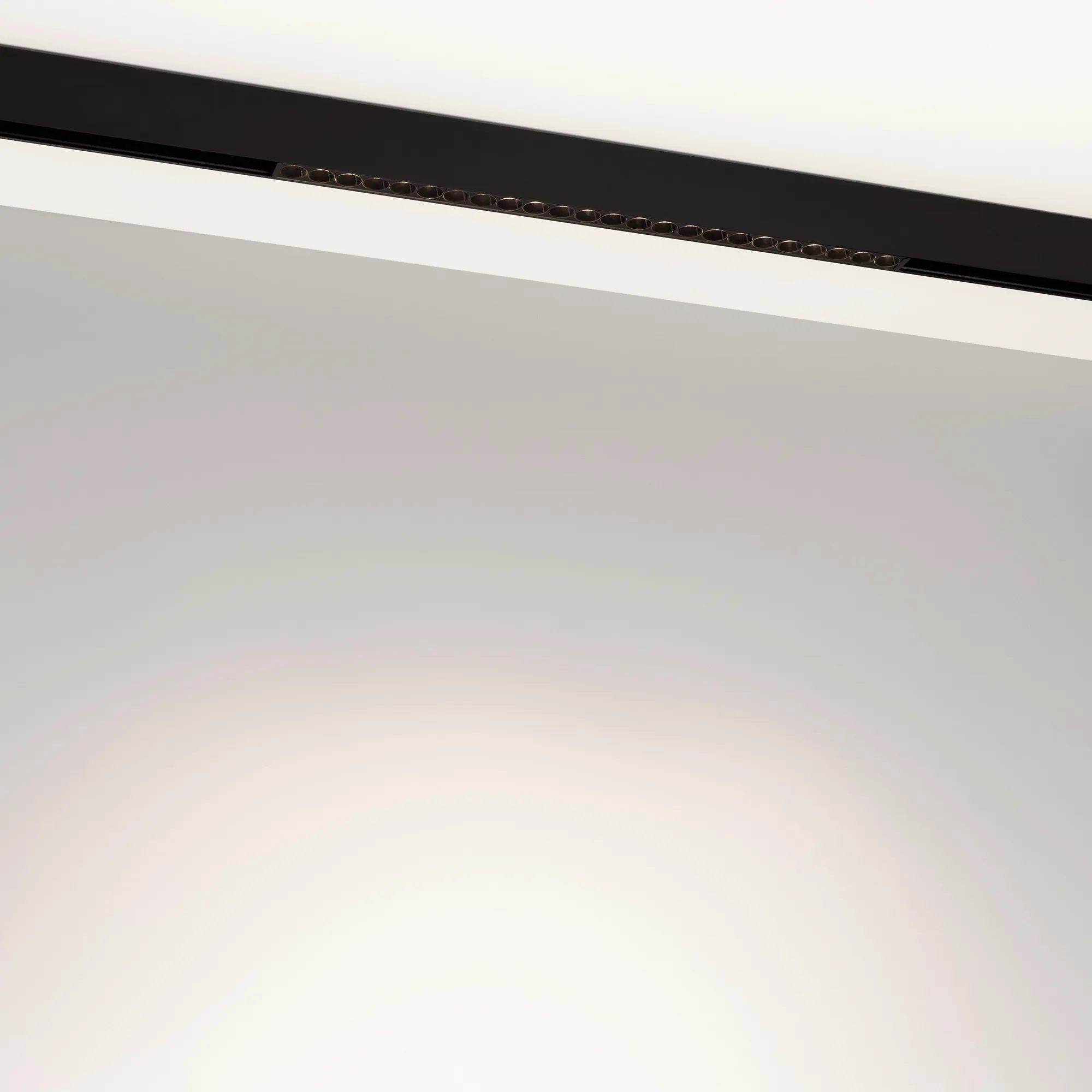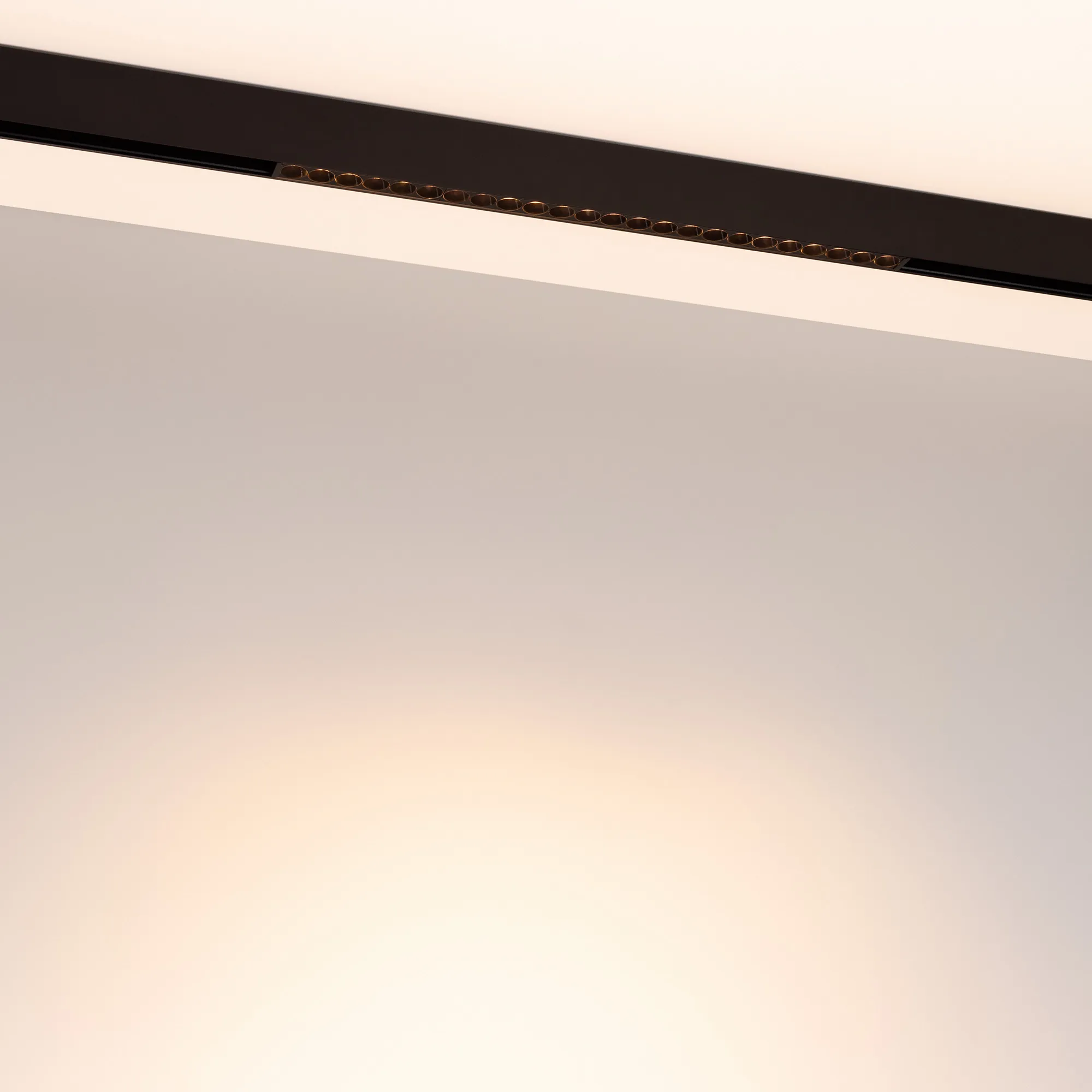 Светильник для магнитных треков MAG-ORIENT шириной 26 мм с управлением DALI(DT8) и изменяемой цветовой температурой. Мощность 16 Вт, св. поток 930-1200 лм, 58-75 лм/Вт, изменяемая цветовая температура 2700-6500 K, CRI>90, угол 24°, напряжение питания 48 В. Черный прямоугольный корпус из металл, экран поликарбонат, степень защиты IP20. Размер: длина 462 мм, ширина 22 мм, высота 42 мм. Монтаж на трек MAG-ORIENT. Пульсация <1%.