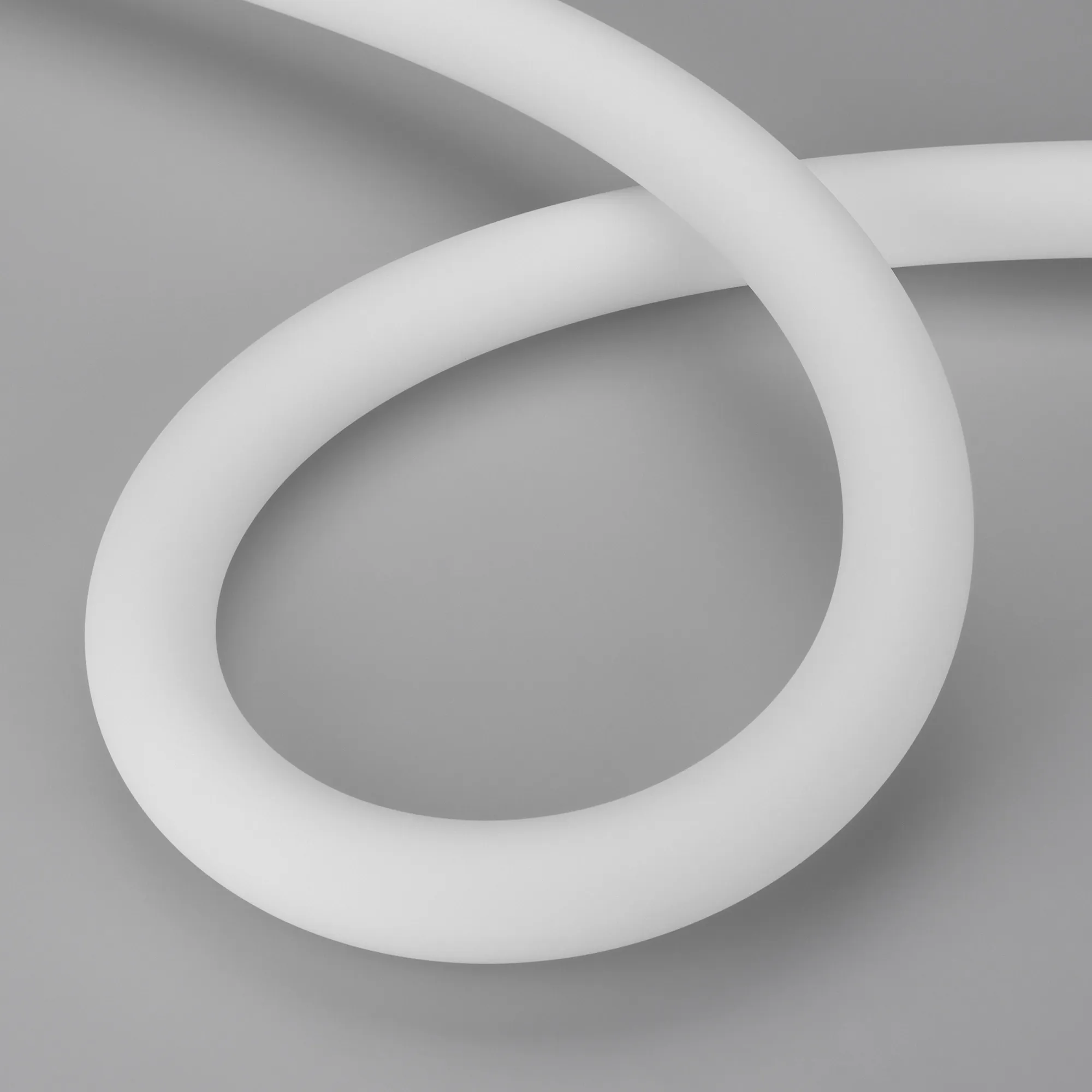 Гибкая герметичная лента (неон серии MOONLIGHT), сечение 40×40 мм. Светодиоды SMD 2835 336 шт/м. Цвет свечения ТЕПЛЫЙ БЕЛЫЙ (3000 К), индекс цветопередачи CRI>90, световой поток 1030 лм/м, угол излучения 360°. Мощность 15 Вт/м, питание 24 В. Класс пылевлагозащиты IP65. Размеры 5000×40×40 мм. Резка не предусмотрена. Изгиб согласно метки на корпусе, минимальный радиус изгиба 240 мм. Кабель питания длиной 500 мм, вывод с одной стороны перпендикулярно линии сечения неона. Катушка 5 м. Цена за 1 м. Гарантия 3 года.