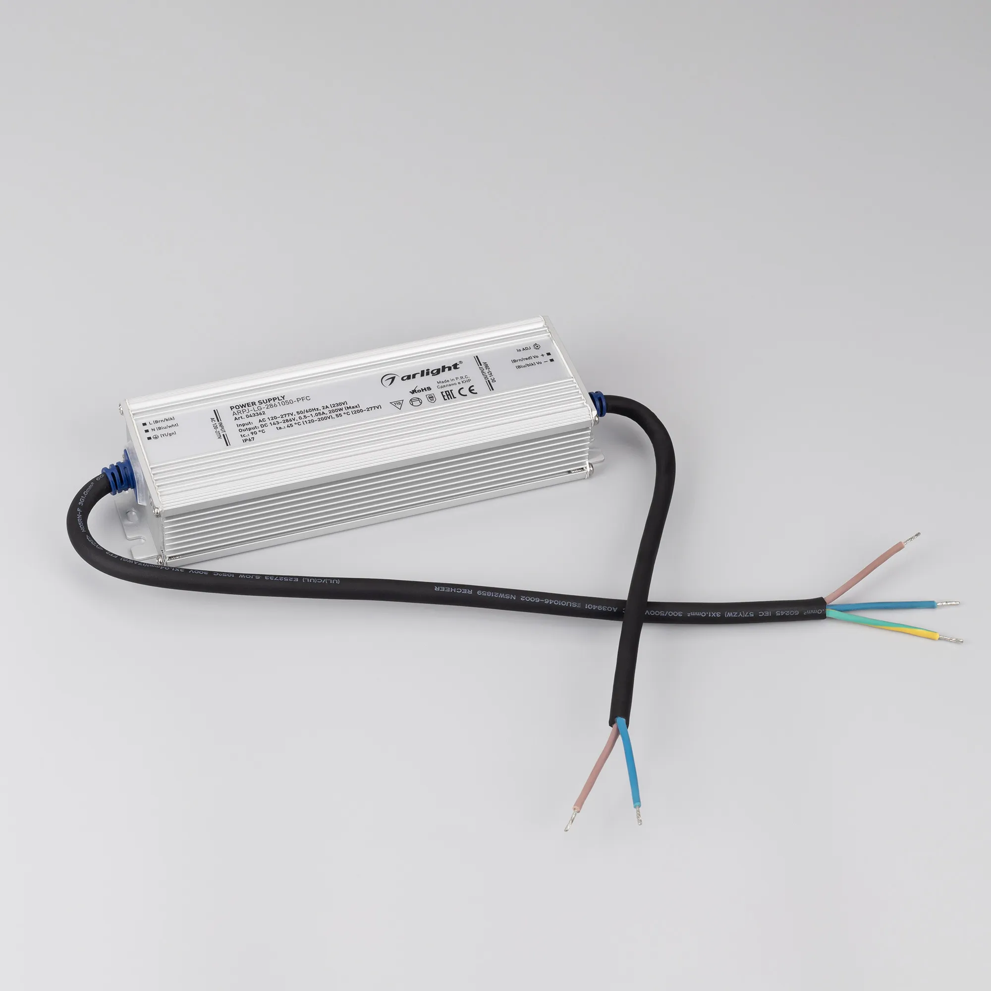 Блок питания ARPJ-LG-2861050-PFC (200W, 143-286V, 0.5-1.05A) (Arlight, IP67 Металл, 5 лет)