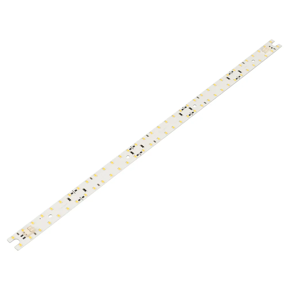 Поставка под заказ от 500 шт.Светодиодная линейка для использования с профилем SL-ARC-3535-LINE. PCB - алюминий, длина 500 мм, 70шт светодиодов SMD 2835. Цвет свечения ТЕПЛЫЙ 2700К, цветопередача CRI>80. Питание 24 В, мощность 9,6 Вт, ток 0.4 А, (уд.мощность 19.2 Вт/м). Размеры 500х20х2,2 мм. Минимальный отрезок 99.8 мм, 14 светодиодов.