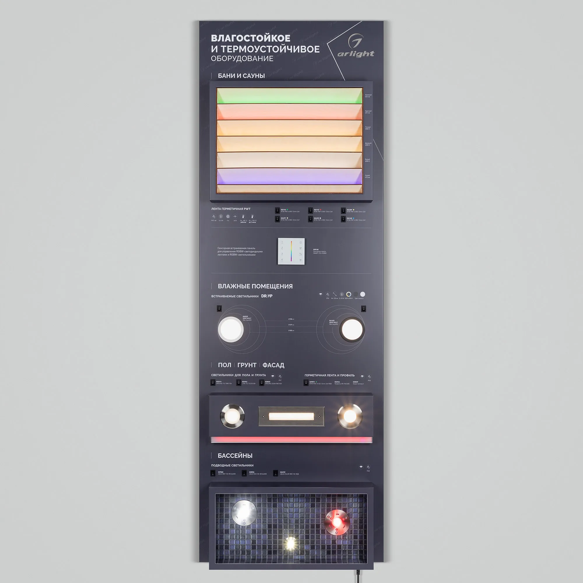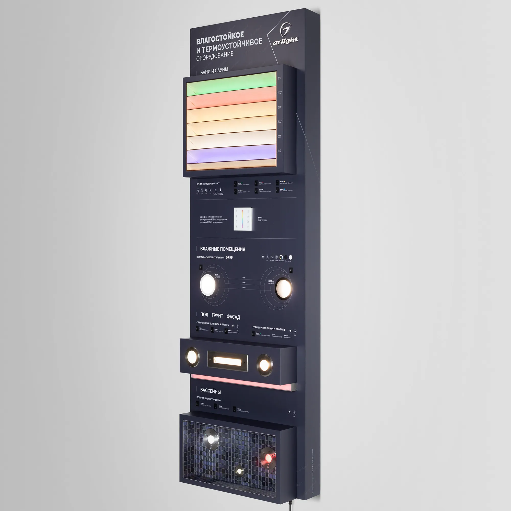 В магазине Мельковский Свет Вы можете купить "Стенд герметичные решения ARLIGHT-01-1760x600mm (230V) (Arlight, -)"