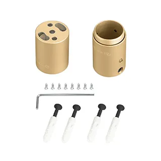 Вертикальное потолочное крепление для герметичной ленты MOONLIGHT-D25. Цвет золотой. Тип-U, лента подвешивается за две точки, подходит для любых потолочных поверхностей. В комплекте 2 потолочных крепления к ленте MOONLIGHT-360 диаметром 25мм, 4 шурупа с дюбелями и шестигранный ключ для фиксации неона в креплениях.