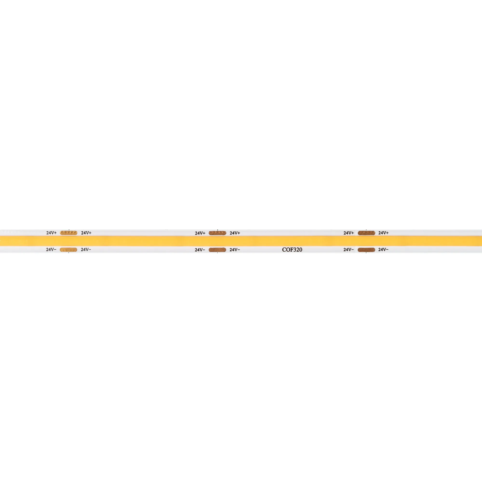 Светодиодная лента сплошного свечения COB серии X320. Светодиоды CSP, 320 шт/м, белая плата шириной 8 мм, скотч 3M. Цвет ТЕПЛЫЙ 2700K, индекс цветопередачи CRI>90, угол 175°. Питание 24 В, мощность 8 Вт/м (40 Вт на 5 м). Размеры 5000х8х2 мм. Мин. отрезок 50 мм. Цена за 1 м.