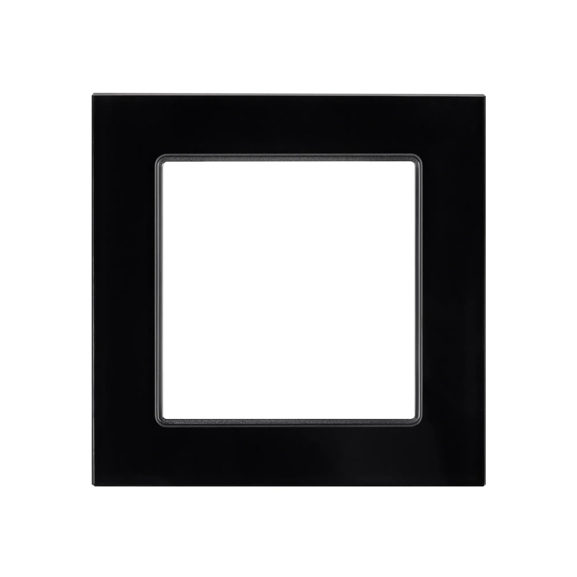 Рамка стеклянная на 1 пост, под встраиваемый механизм (квадрат). Цвет - черный. Ориентации монтажа - горизонтальная.