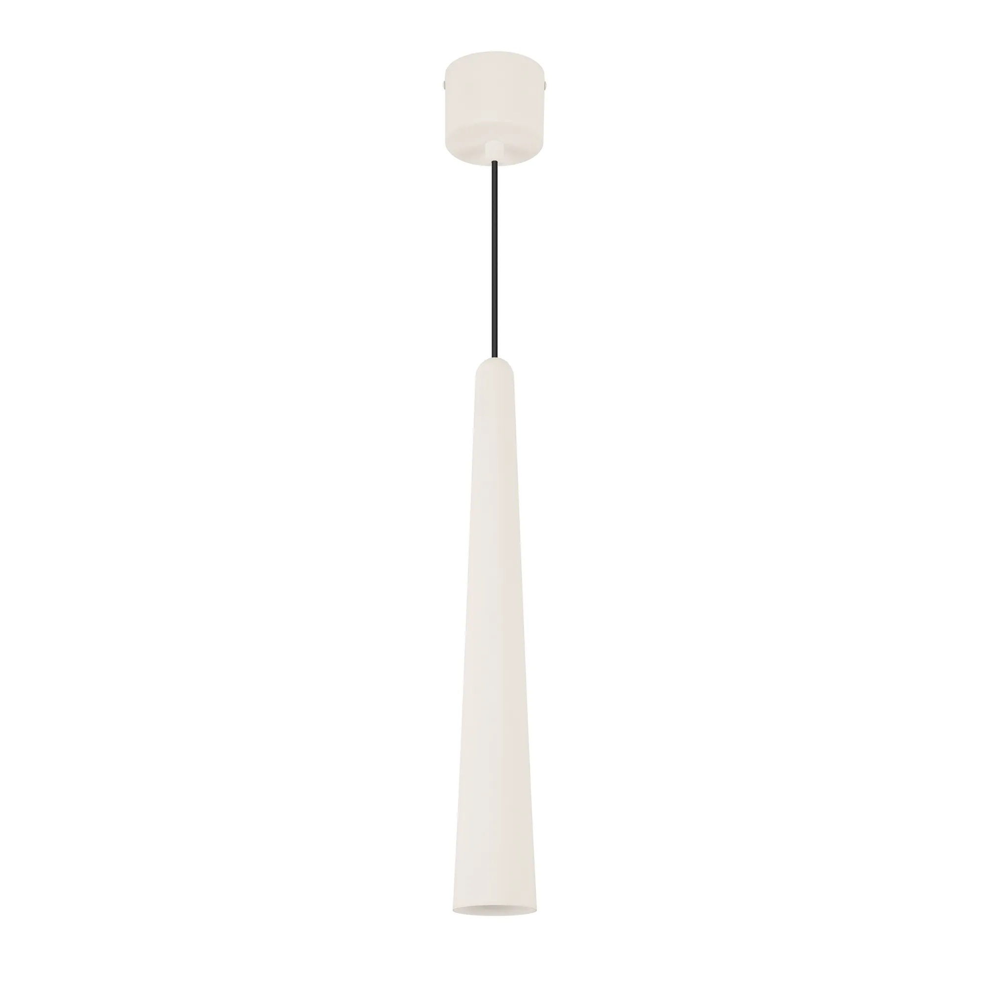 Подвесной светильник. Мощность 5 Вт, св. поток 400 лм, световая эффективность 70 лм/Вт, теплый 2700 K, CRI>92, угол 36°, напряжение питания 230 В. Кремовый конусообразный вытянутый корпус из алюминия, линза из PMMA, степень защиты IP20. Размер: диаметр 57 мм, высота 400 мм. Монтаж подвесной, длина подвеса 2000 мм, регулируемая. В комплекте 2 вида чаш. Габариты встраиваемой чаши: Ø 80x41 мм. Габариты накладной чаши Ø80x60 мм. Драйвер 2,8-12В, 500 мА, пульсация <1%.