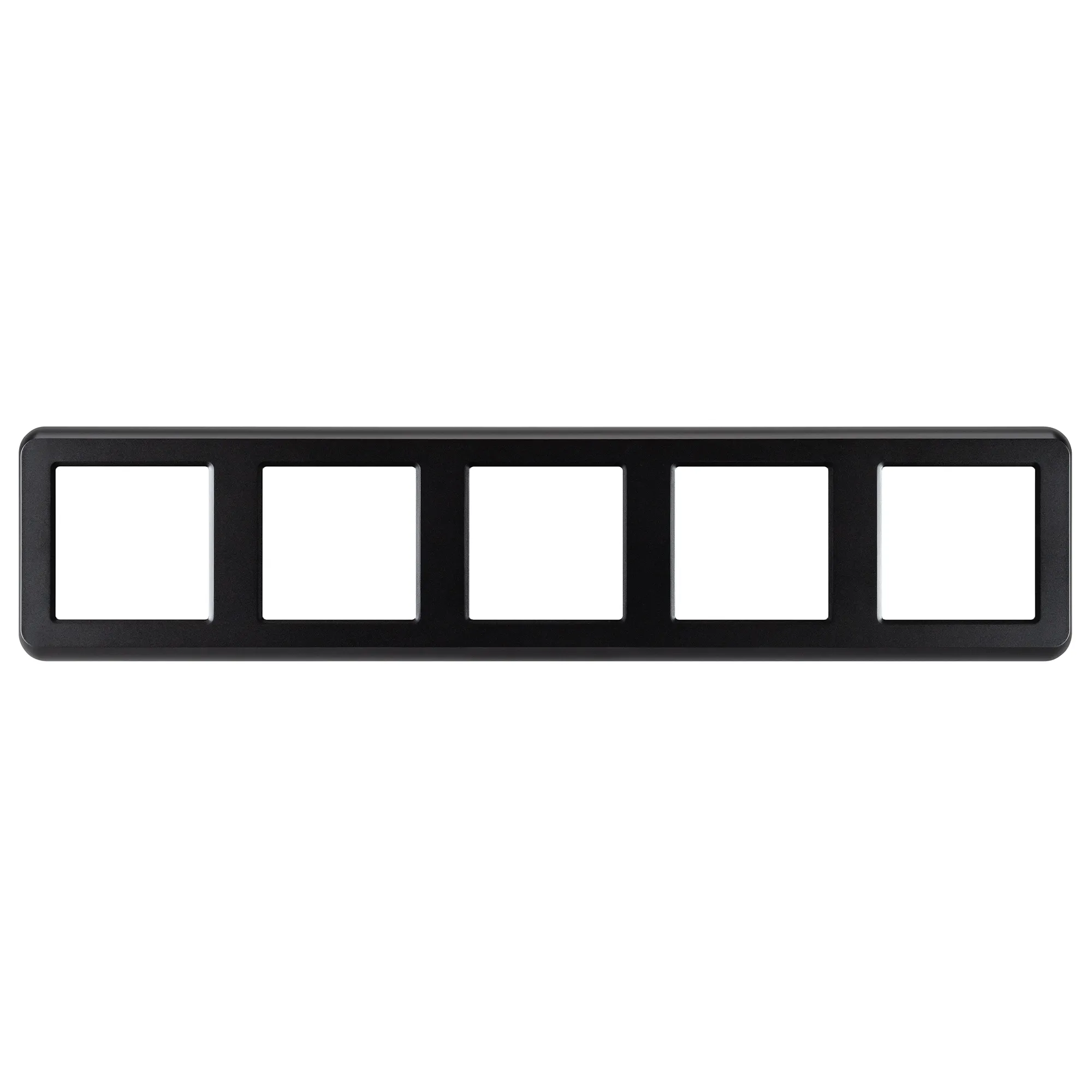 Рамка пластиковая на 5 постов, под встраиваемый механизм (квадрат). Цвет - черный. Ориентации монтажа - горизонтальная.