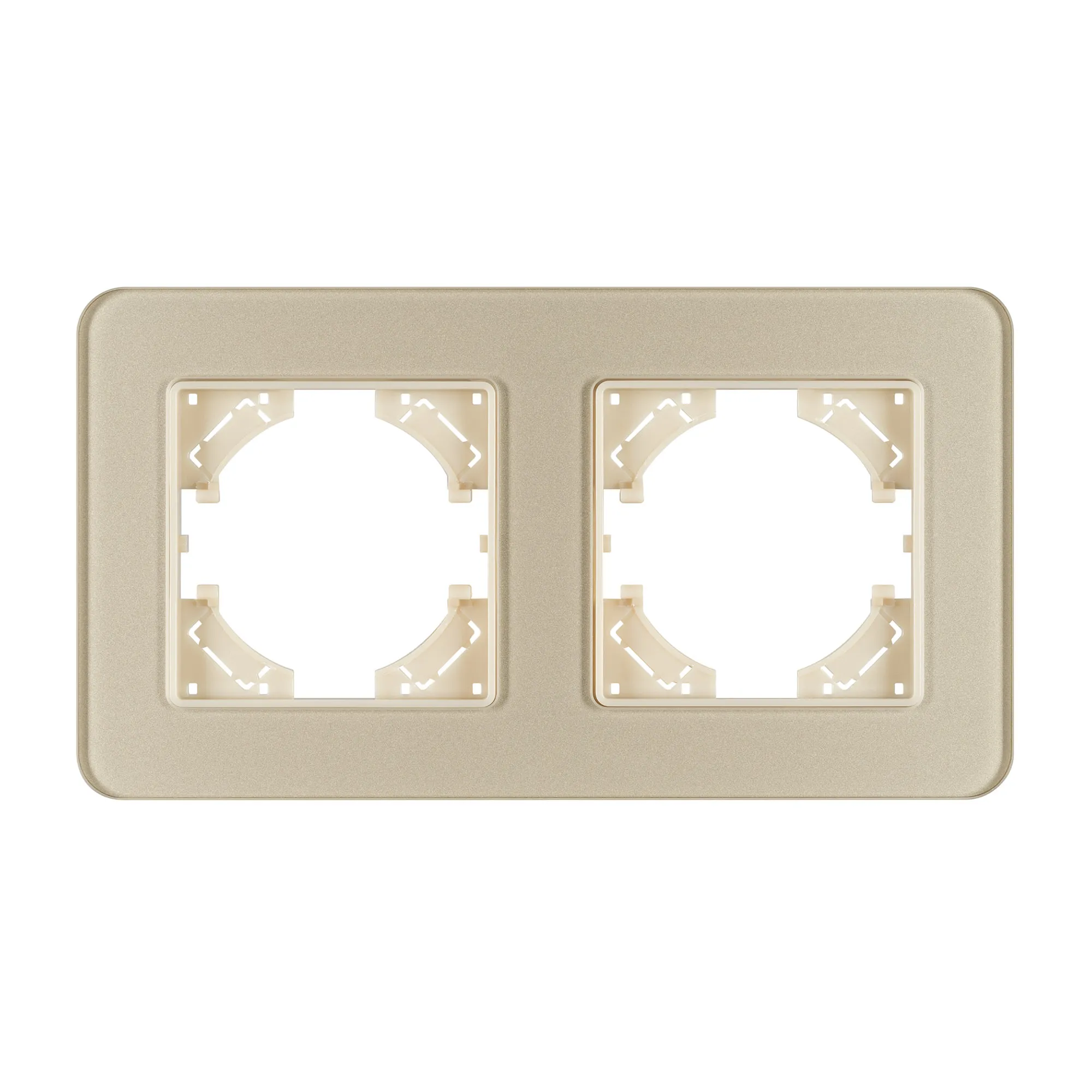 Рамка стеклянная на 2 поста, под встраиваемый механизм. Цвет - золотой. Среднего уровня герметичности IP20. Ориентация монтажа - горизонтальная (основным ориентиром служат посадочные выступы для накладки механизма).