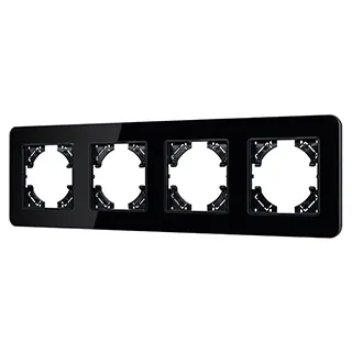 Рамка стеклянная на 4 поста, под встраиваемый механизм. Цвет - черный. Среднего уровня герметичности IP20. Ориентация монтажа - горизонтальная (основным ориентиром служат посадочные выступы для накладки механизма).