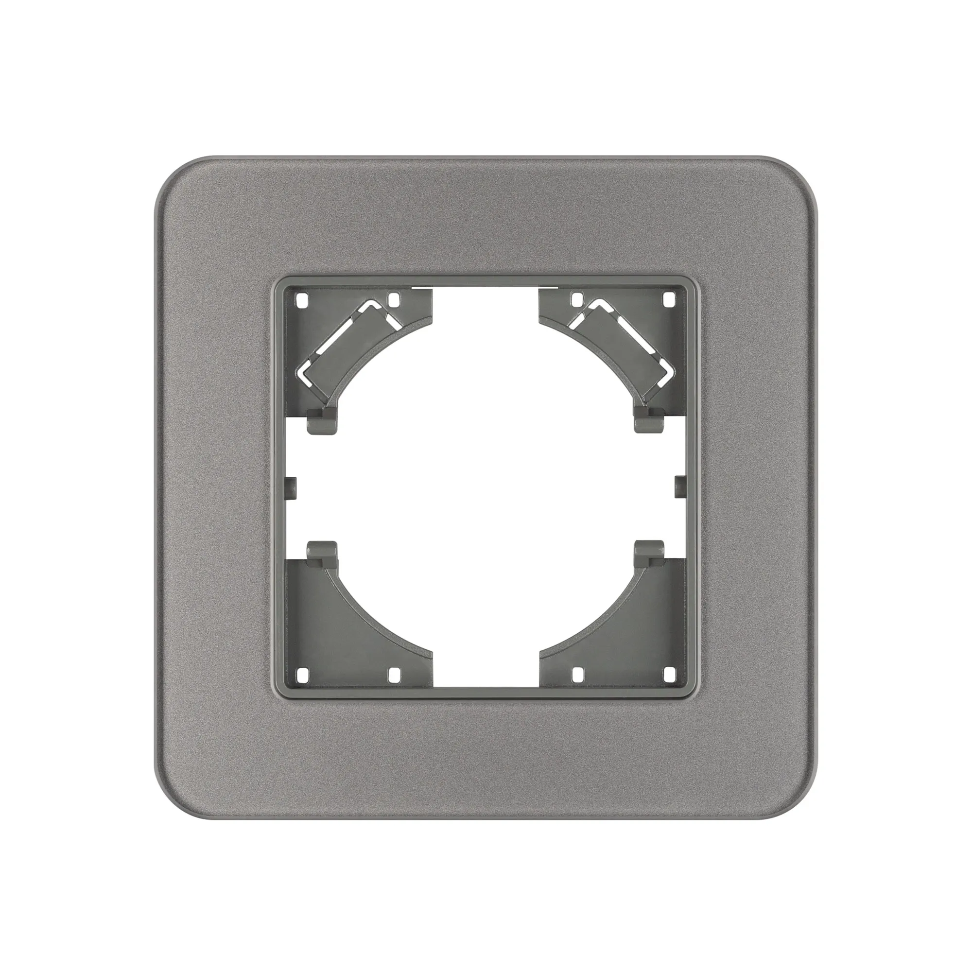 Рамка стеклянная на 1 пост, под встраиваемый механизм. Цвет - серый. Среднего уровня герметичности IP20. Ориентация монтажа - горизонтальная (основным ориентиром служат посадочные выступы для накладки механизма).