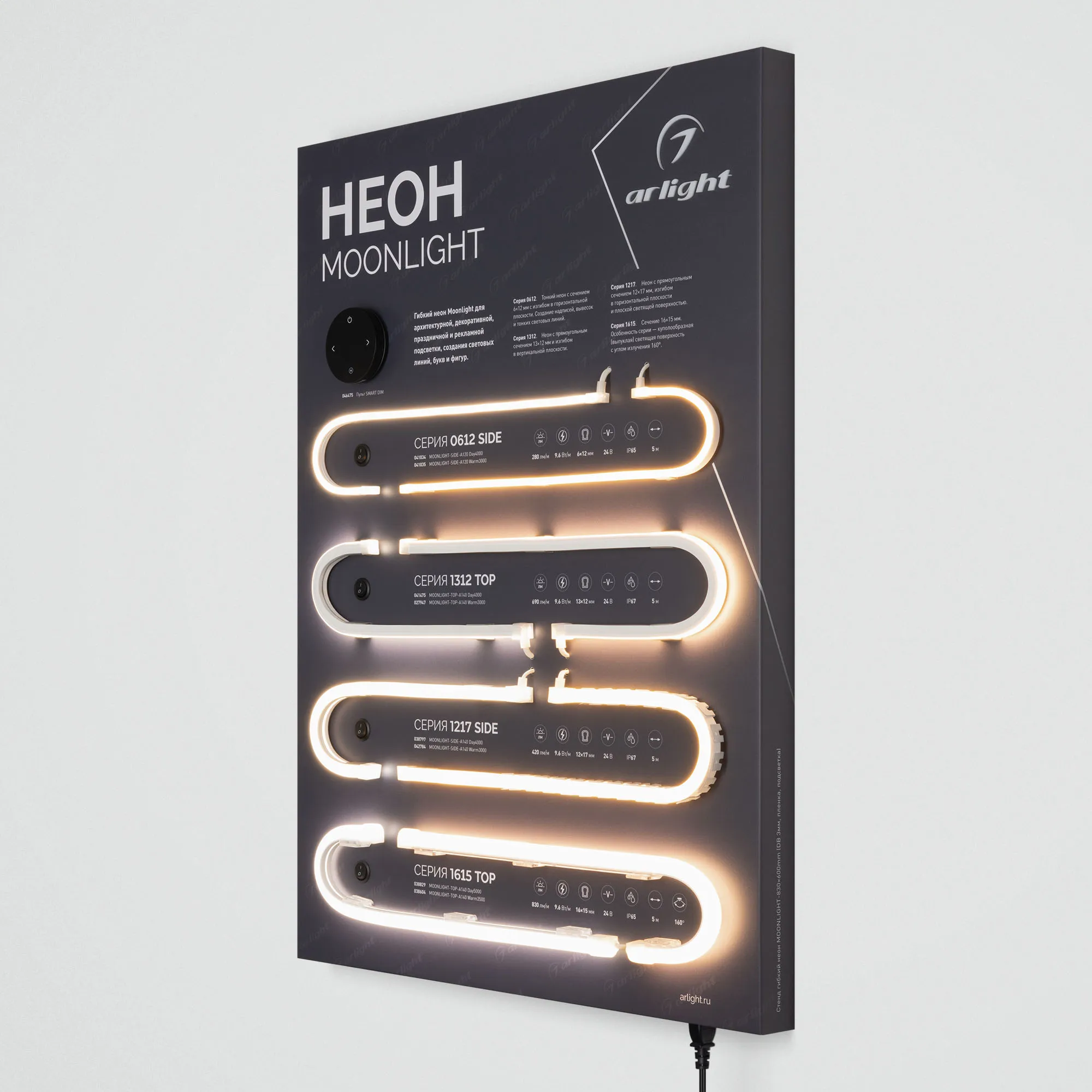 В магазине Мельковский Свет Вы можете купить "Стенд Гибкий Неон MOONLIGHT-830x600mm (DB 3мм, пленка, подсветка) (Arlight, -)"