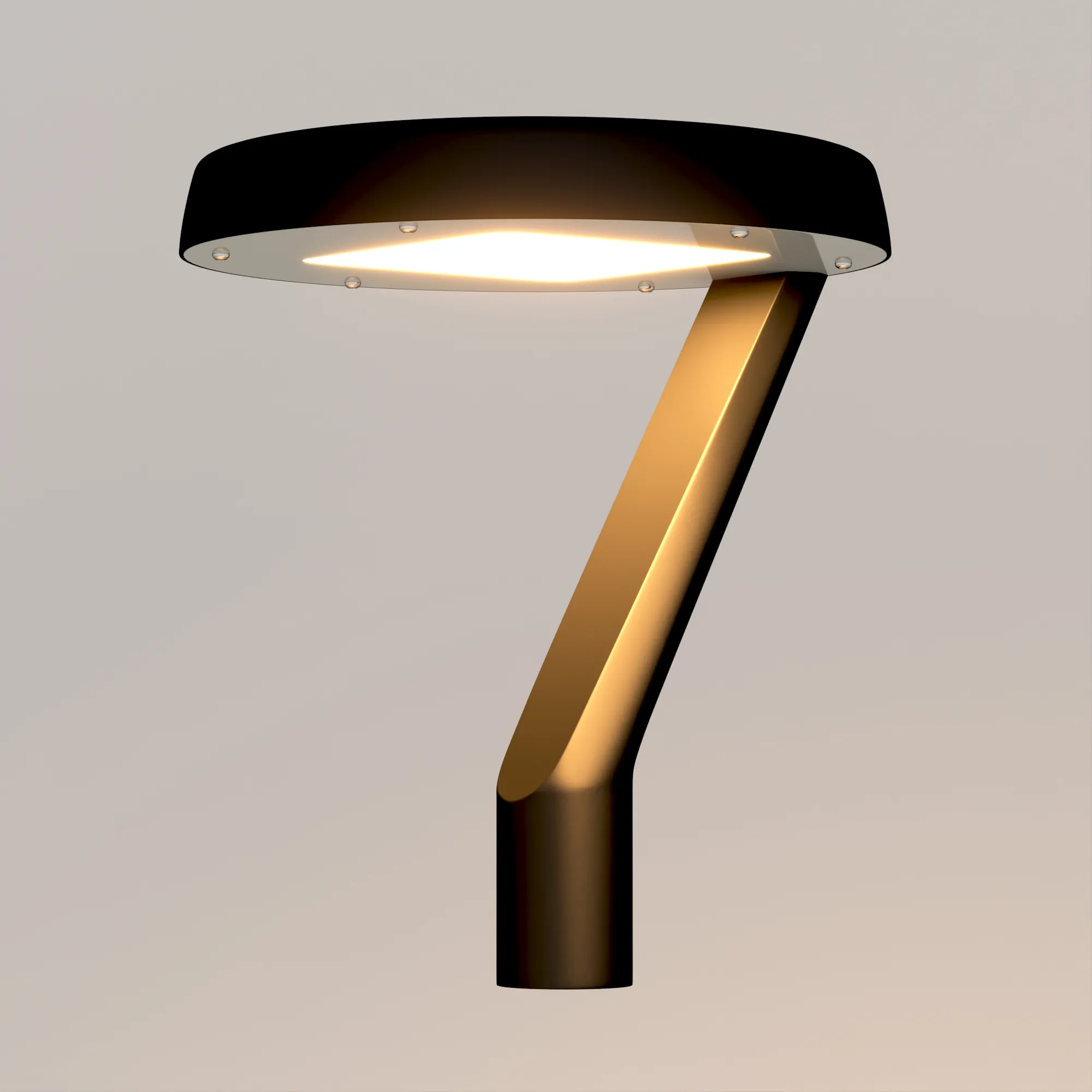Поставка под заказ от 5 шт. Венчающий светодиодный светильник. Мощность 50 Вт, св. поток 7100 лм, 141 лм/Вт, тёплый 3000 K, CRI>80, угол 145x40°, напряжение питания 230 В. Черный корпус из алюминия, экран закаленное стекло, степень защиты IP65. Размер: диаметр 510 мм, высота 480 мм. Монтаж на вертикальную опору диаметром 76 мм.