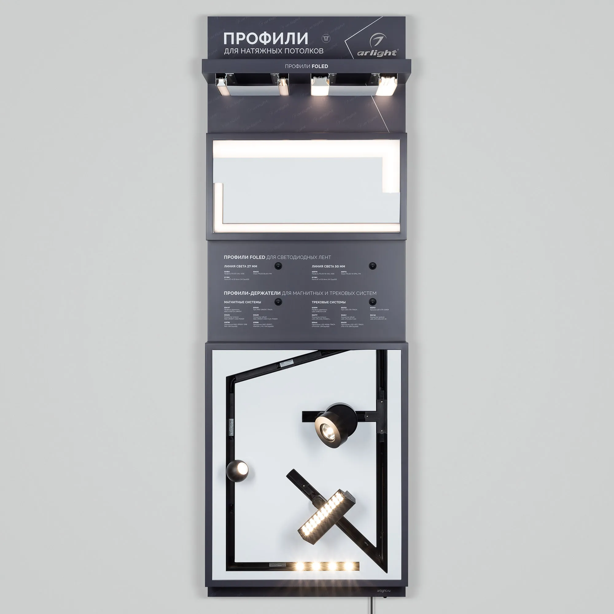 В магазине Мельковский Свет Вы можете купить "Стенд Решения для натяжных потолков ARLIGHT-02-1760x600mm (DB 3мм, пленка) (Arlight, -)"