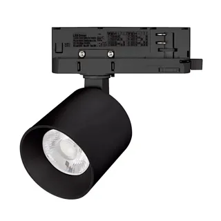Светильник для трехфазных треков, 8 Вт с управлением TRIAC. Цвет свечения ДНЕВНОЙ 4000K, световой поток 856 лм, угол 38°, CRI>90. Корпус круглый, металл, цвет черный, IP20. Размеры Ø60x59,7 мм. Входное напряжение AC220-240V. Драйвер встроенный 9-40В (200 - 550мА), 50/60Гц, максимальная мощность 22W.