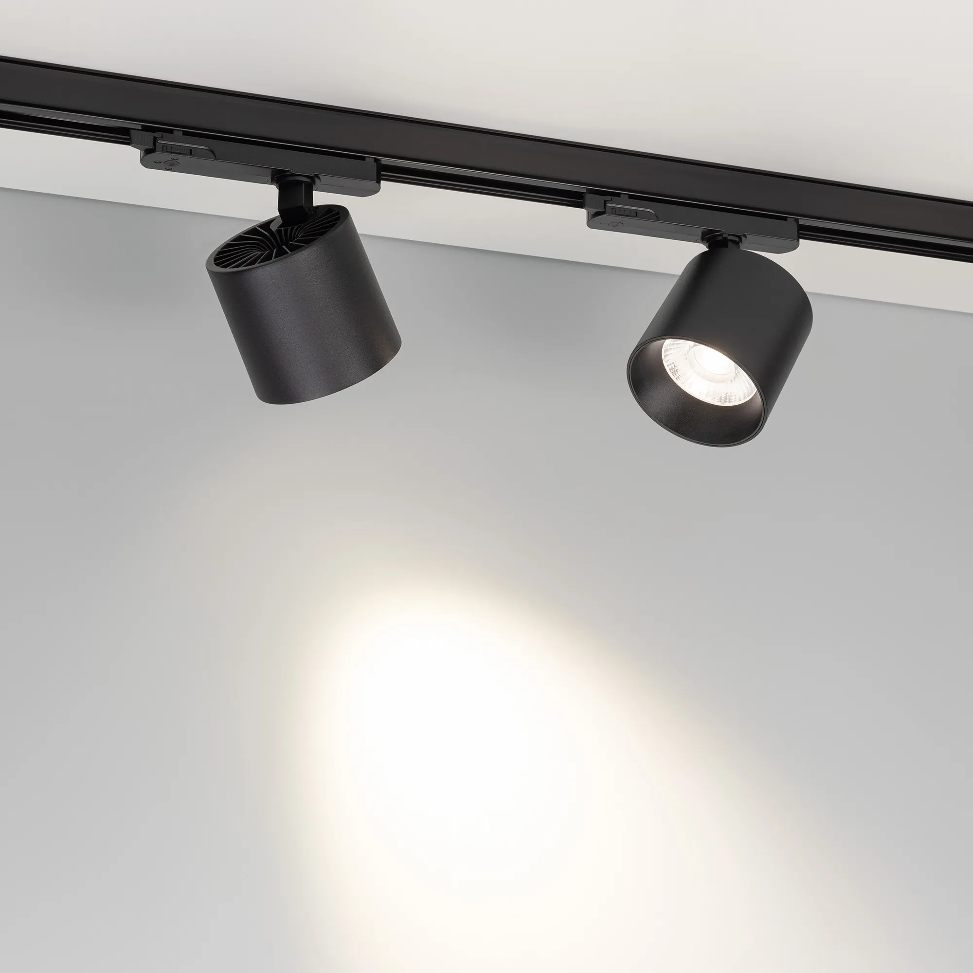 Светильник для трехфазных треков, 36 Вт с управлением TRIAC. Цвет свечения ДНЕВНОЙ 4000K, световой поток 3772 лм, угол 38°, CRI>90. Корпус круглый, металл, цвет черный, IP20. Размеры Ø100x93 мм. Входное напряжение AC220-240V. Драйвер встроенный 9-40В (300 - 1050мА), 50/60Гц, максимальная мощность 42 Вт.