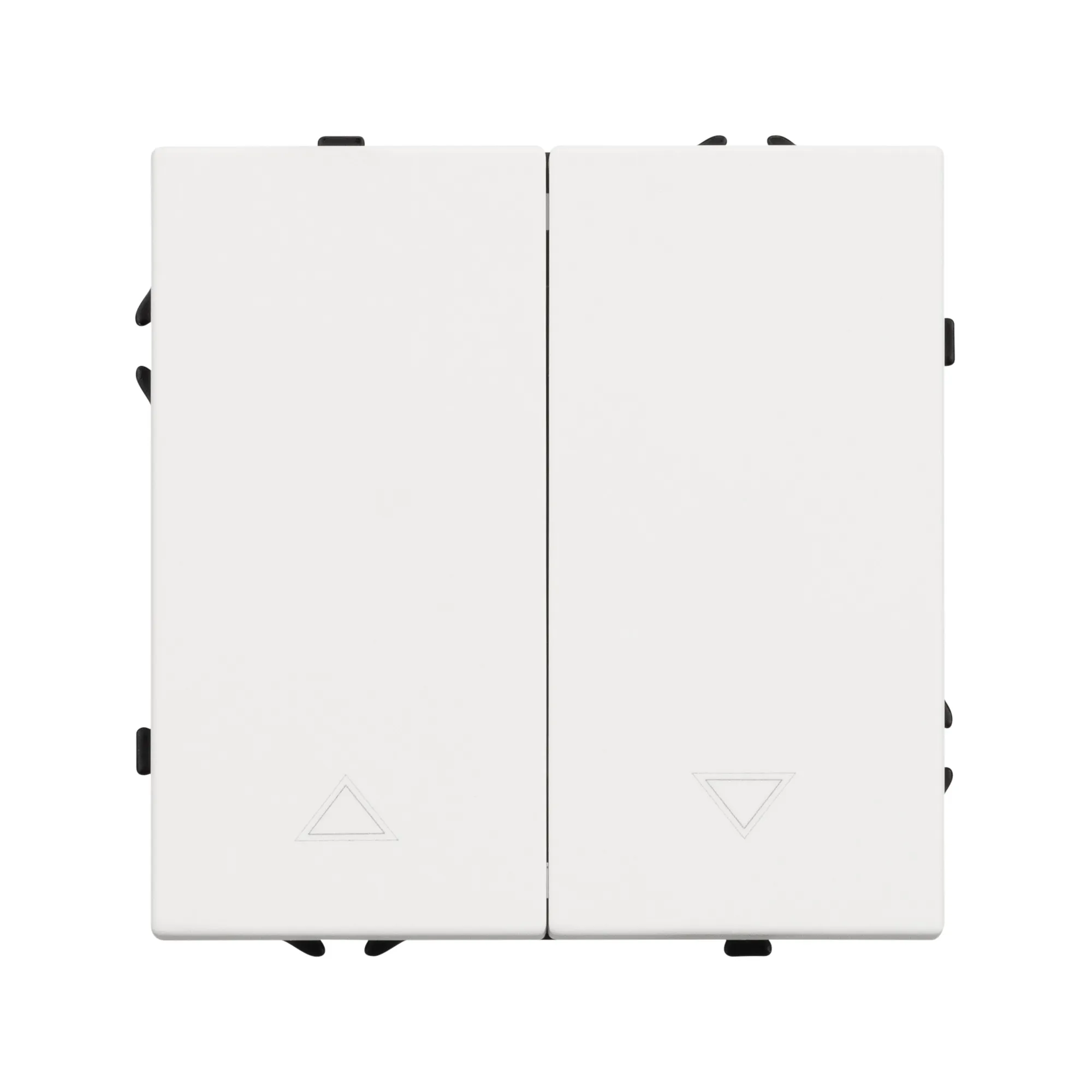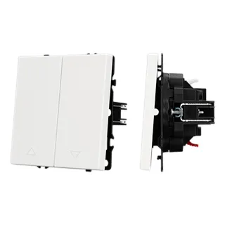 Механизм выключателя управления шторами на 1 пост 2 самовозвратные клавиши. Цвет - белый, с Soft-Touch покрытием. Без фронтальной рамки. Уровень пылевлагозащиты IP20. Выключатель устанавливается в стандартный круглый подрозетник круглого сечения диаметром 60мм.