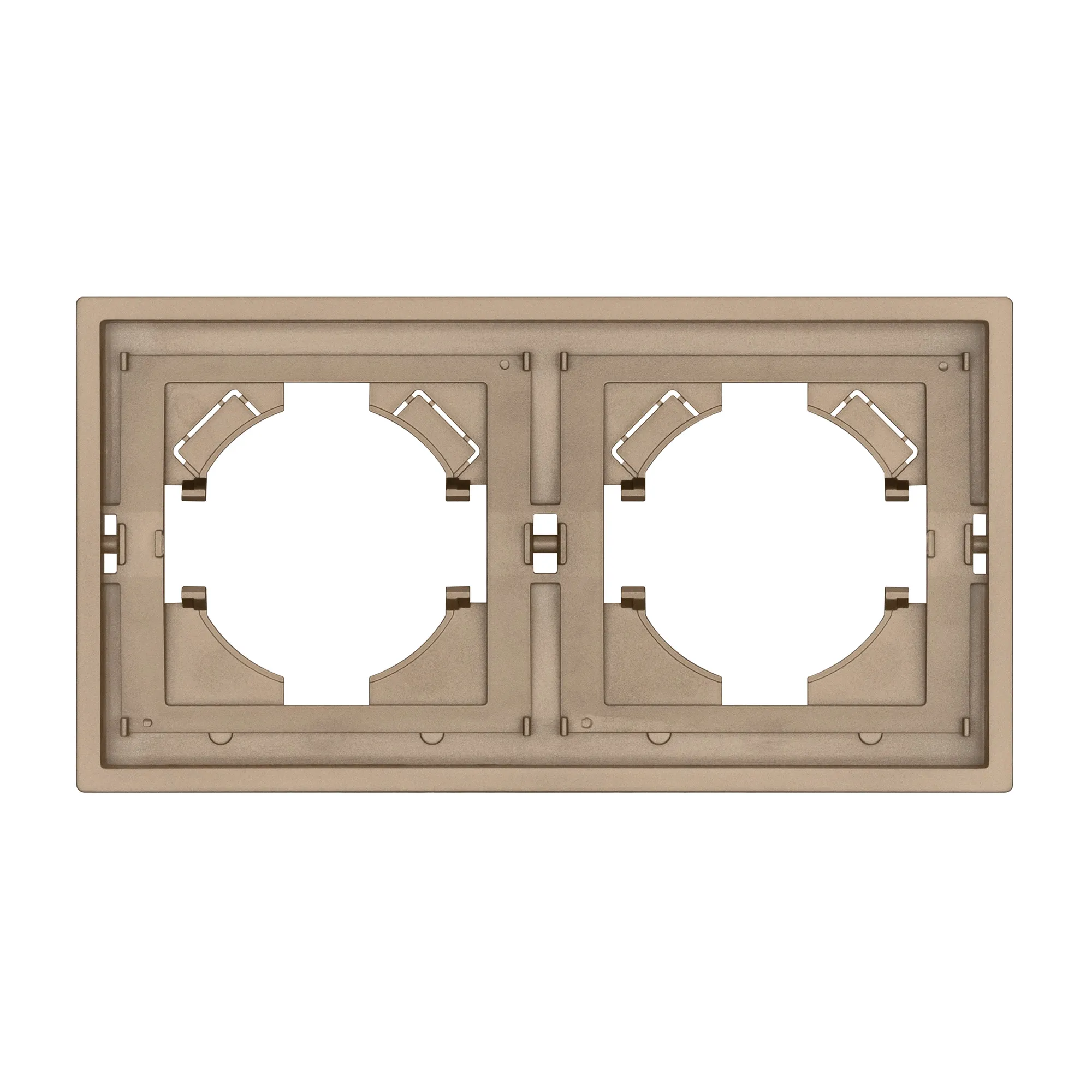 Рамка пластиковая на 2 поста, под встраиваемый механизм. Цвет - золотой. Среднего уровня герметичности IP20. Ориентация монтажа горизонтальная. Габаритные размеры: длина 150 мм, ширина 80 мм, высота 9 мм. Гарантийный срок 12 мес.