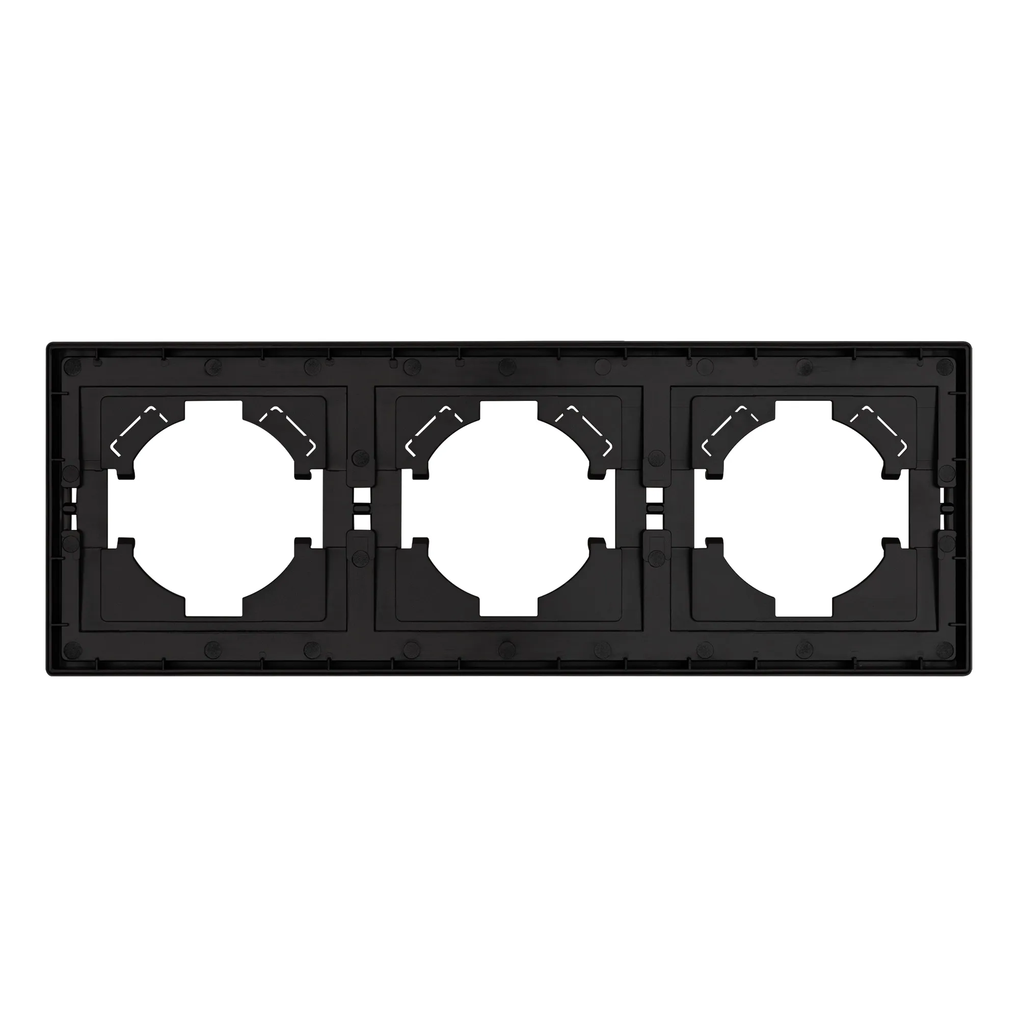 Рамка пластиковая на 3 поста, под встраиваемый механизм. Цвет - серый. Среднего уровня герметичности IP20. Ориентация монтажа горизонтальная.