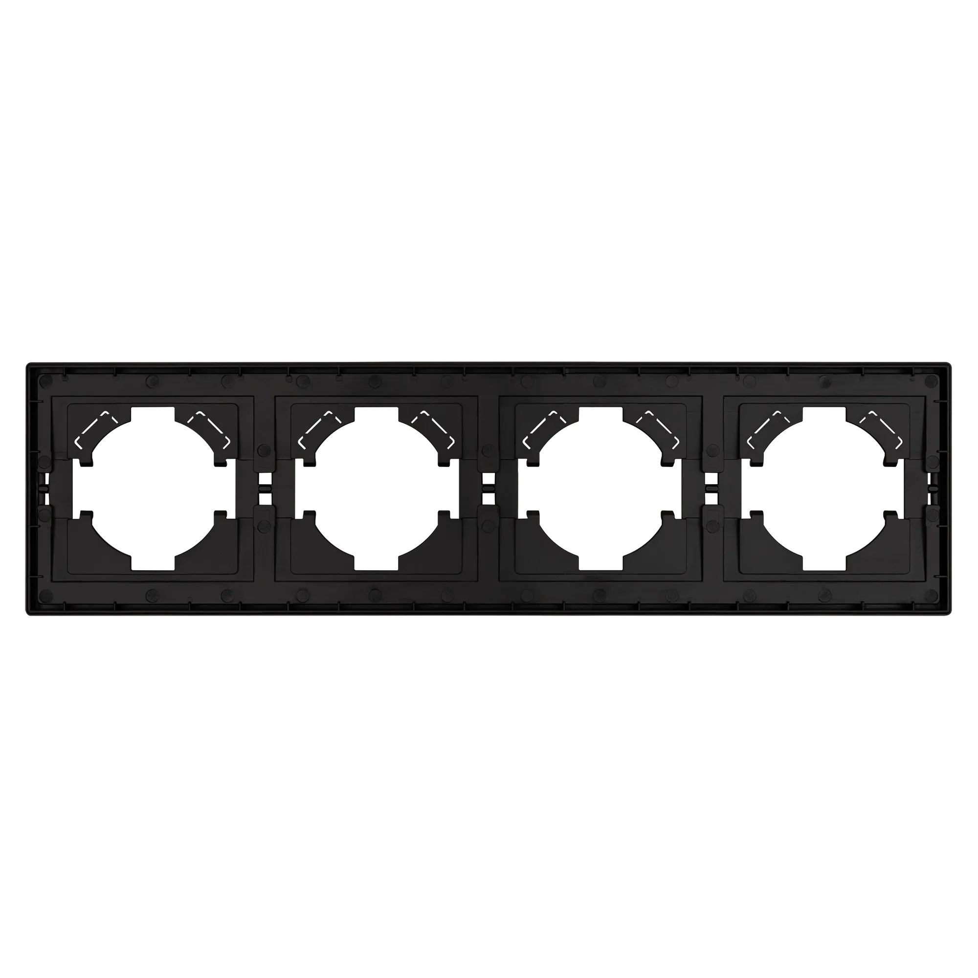 Рамка пластиковая на 4 поста, под встраиваемый механизм. Цвет - серый. Среднего уровня герметичности IP20. Ориентация монтажа горизонтальная.