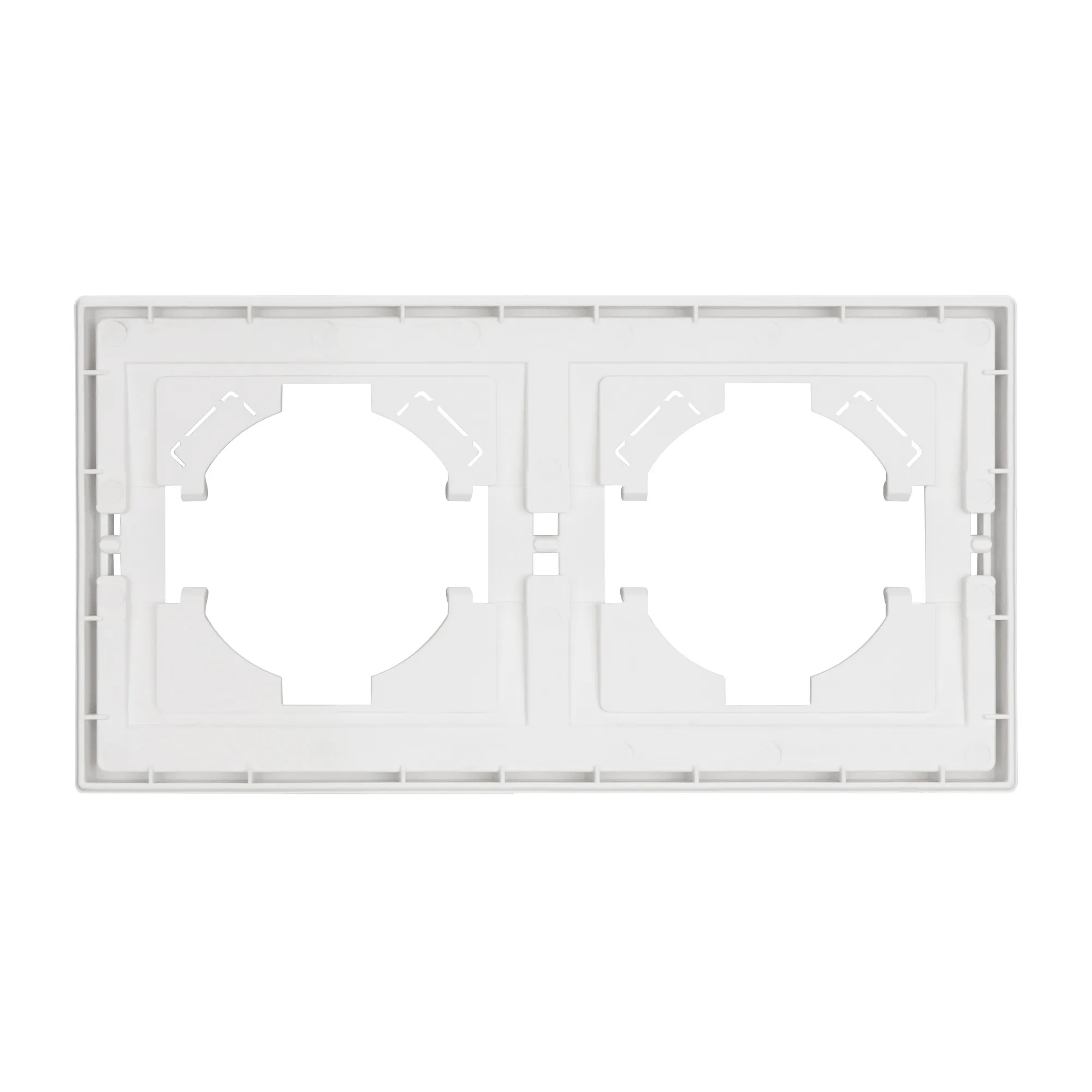 Рамка пластиковая на 2 поста, под встраиваемый механизм. Цвет - белый, с Soft-Touch покрытием. Среднего уровня герметичности IP20. Ориентация монтажа горизонтальная.