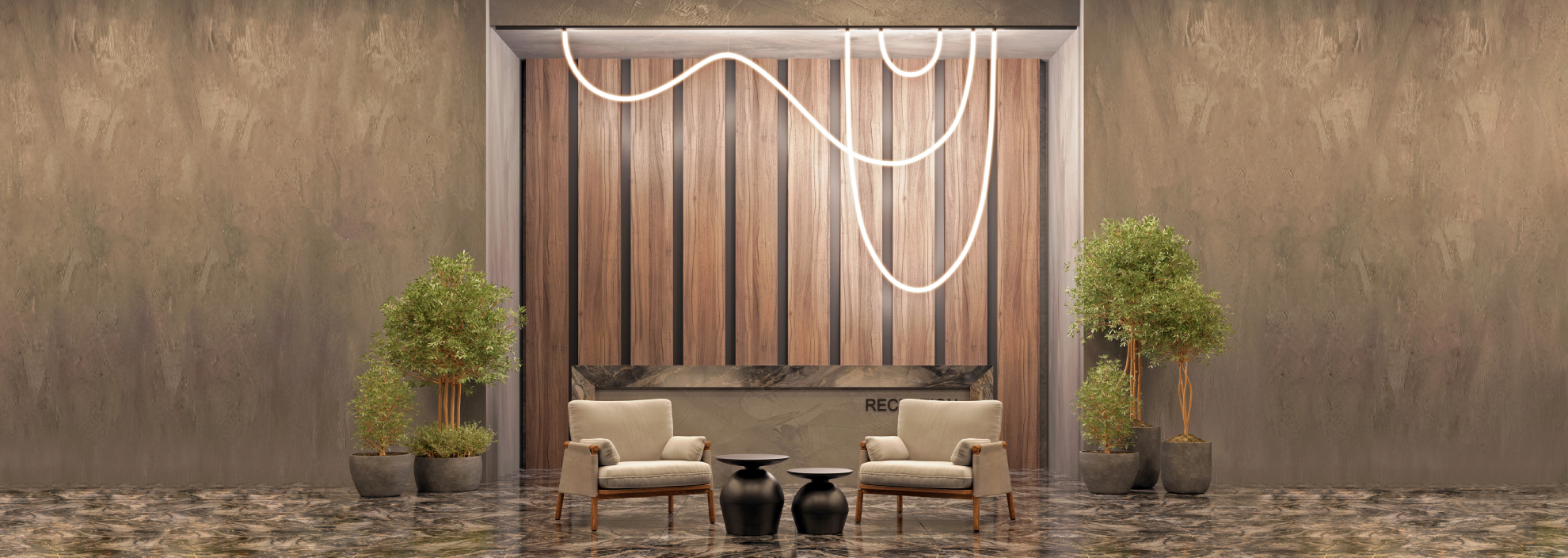 Из светильников можно создавать оригинальные формы: круги и спирали, скрещенные линии и мягкие овалы, волнообразные конструкции. С помощью поворотных коннекторов на 240° возможно менять положение гибких световых трубок в общей конструкции трека и создавать новые решения. Увеличивая или уменьшая количество неоновых трубок в системе, можно регулировать световой поток. Широкая вариативность открывает полную свободу творчества для дизайнеров.