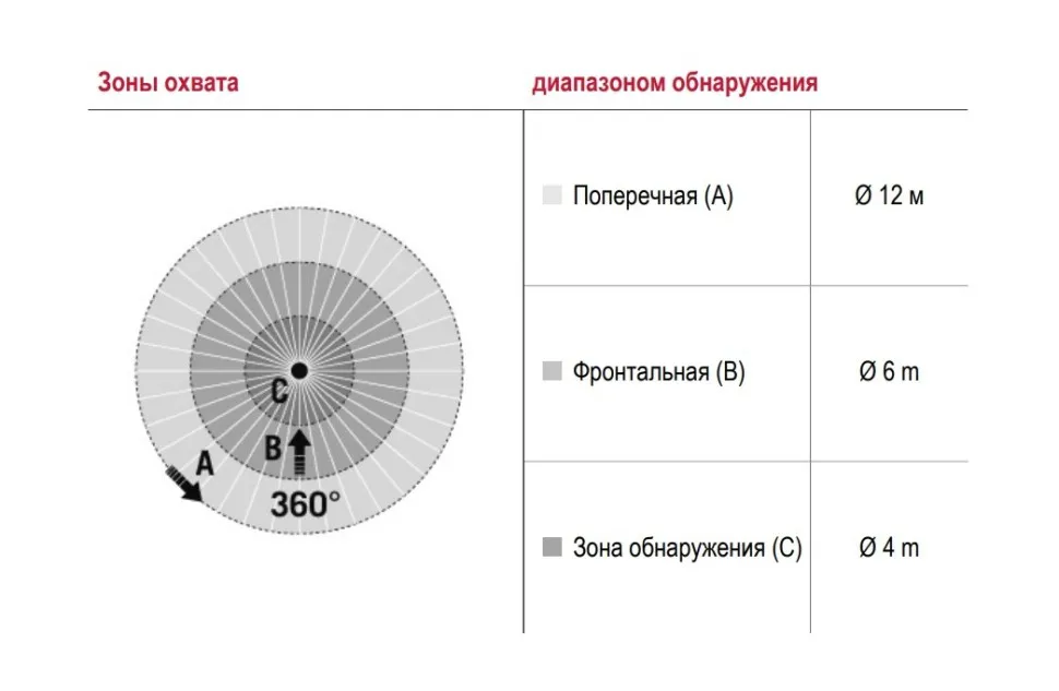 | диапазоном обнаружения Фронтально | Ø 6 м |