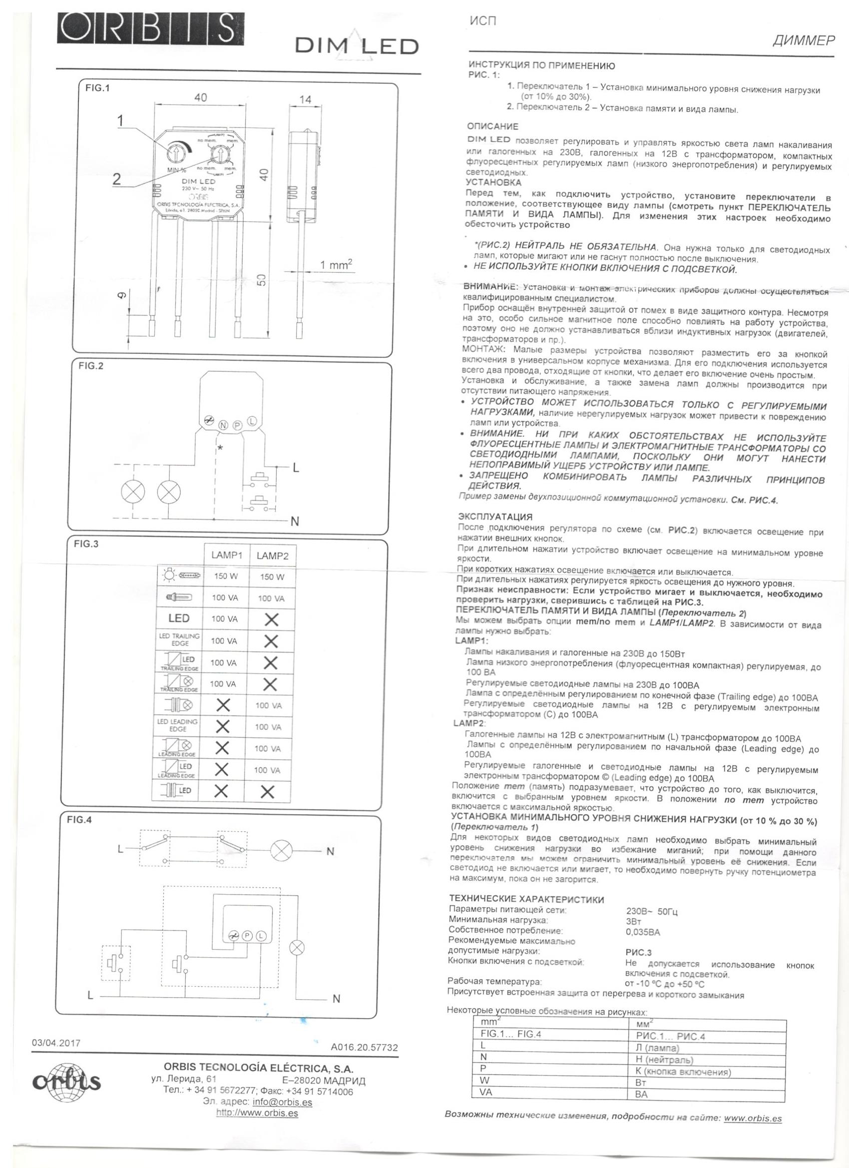 • Подходит для всех диммируемых ламп, за исключением 12В светодиодов, работающих с электромагнитными трансформаторами