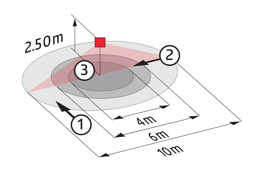 Зона обнаружения: горизонтальный 360° (потолочный монтаж)