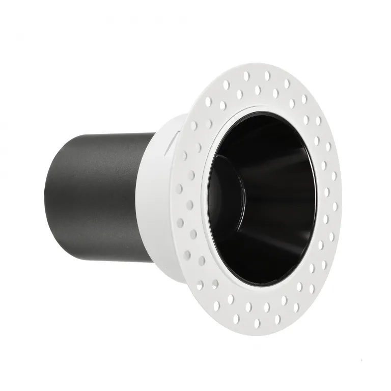 Безрамочный встраиваемый акцентный светодиодный светильник круглого сечения для монтажа под штукатурку.